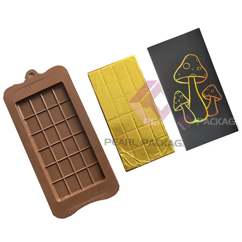 Le Magic Shrooms-Boîte d’emballage de barre de chocolat est disponible en différents lots. Le lot 1 comprend 100 boîtes, 100 pièces d’emballage en aluminium doré et 1 moule en silicone réutilisable. Le lot 2 comprend les mêmes éléments, mais avec des emballages en aluminium argenté. Le lot 3 comprend 100 boîtes et 1 moule en silicone réutilisable. Le lot 4 inclut 100 boîtes, des autocollants personnalisés, 1 moule en silicone réutilisable et 100 emballages en feuille d’or. Le lot 5 propose les mêmes éléments, mais avec des emballages en feuille d’argent. Enfin, le lot 6 comprend 100 boîtes, des autocollants personnalisés et 1 moule en silicone réutilisable.