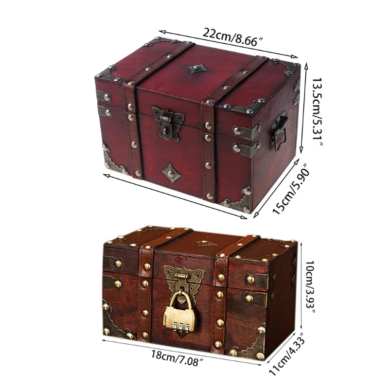 Boîte à Trésor de Pirate avec Serrure Boîte à Trésor Vintage Pirate en Bois de Couleur Antique