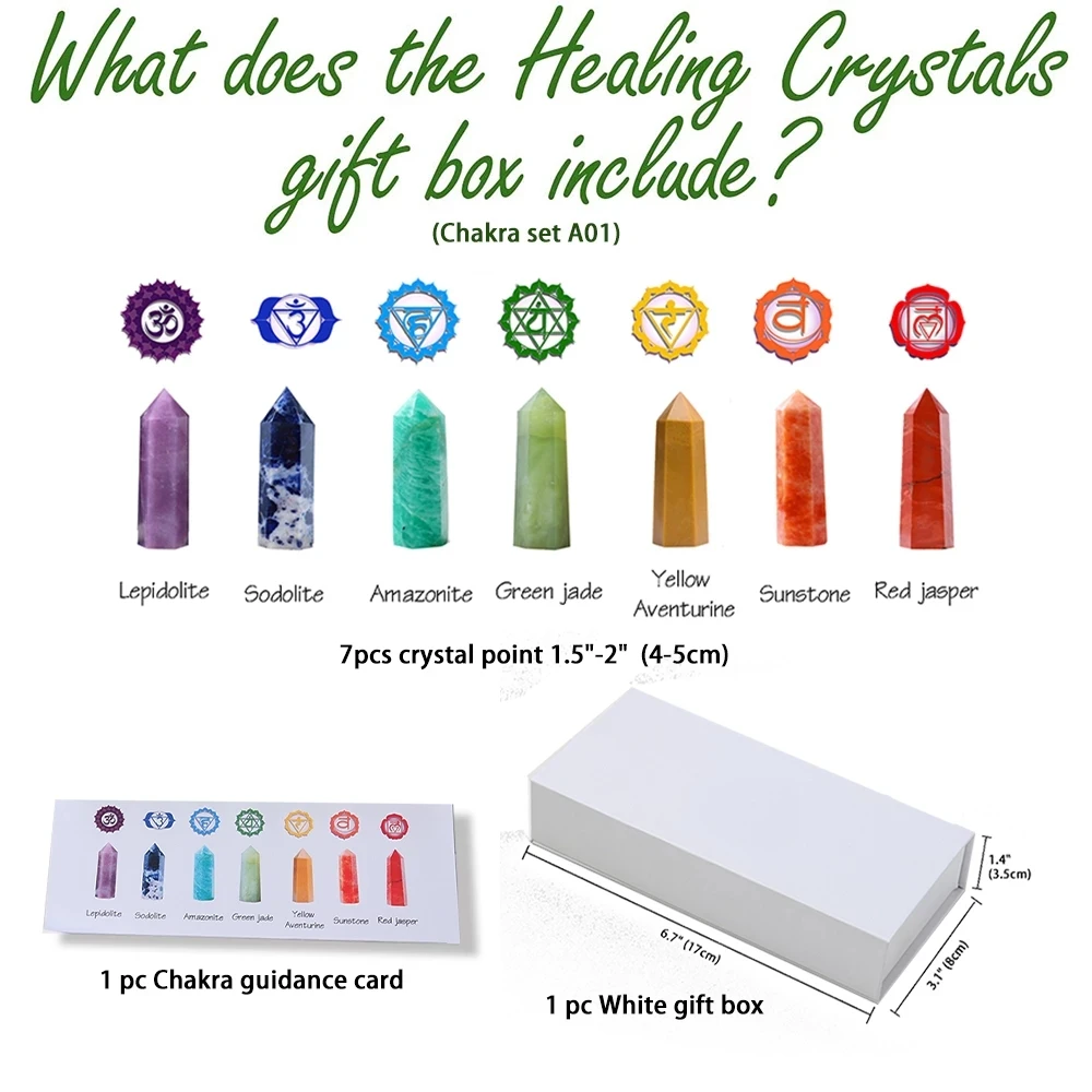L’ensemble de points de cristal Chakra est un cadeau parfait pour ceux qui veulent expérimenter avec les cristaux de guérison. Les points de cristal mesurent environ 4-5cm de longueur et sont de couleur variée. Ce coffret cadeau contient des cristaux naturels qui sont utilisés pour activer les chakras et favoriser la guérison. Que ce soit pour la décoration intérieure ou la collection de cristaux, cet ensemble sera une surprise inattendue.