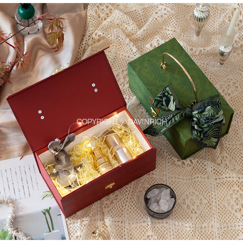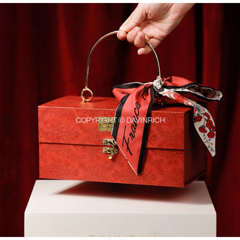 Le coffret cadeau DAVINRICH est fabriqué en papier Karft de haute qualité avec une poignée en métal, ce qui lui confère une apparence rétro italienne.
