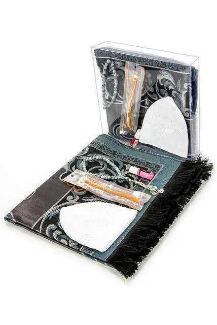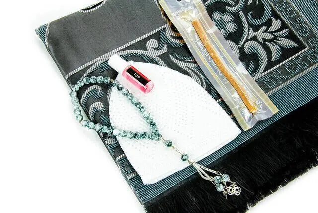 Merveilleux cadeau fête des pères ensemble spécial 2-tapis de prière-Skullcap-chapelet-Miswak – Essence-en boîte