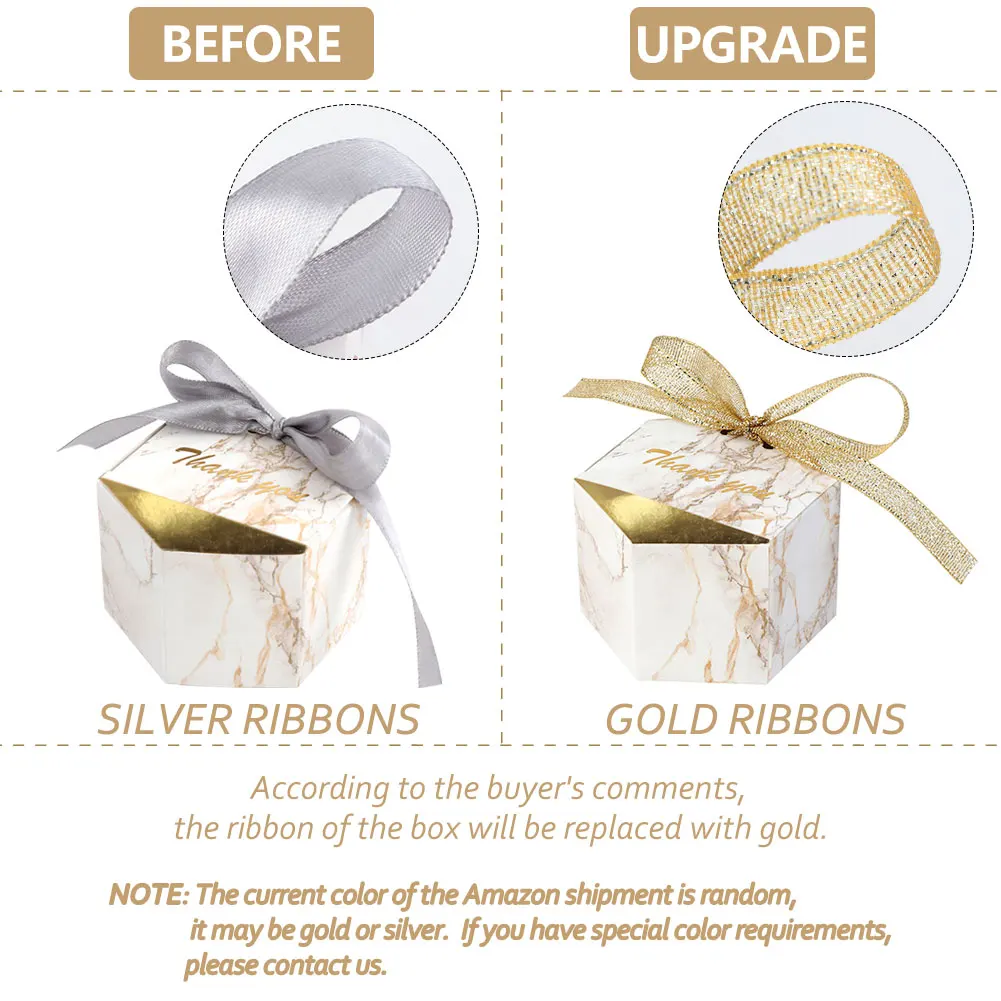- Boîtes à bonbons en marbre et rubans dorés