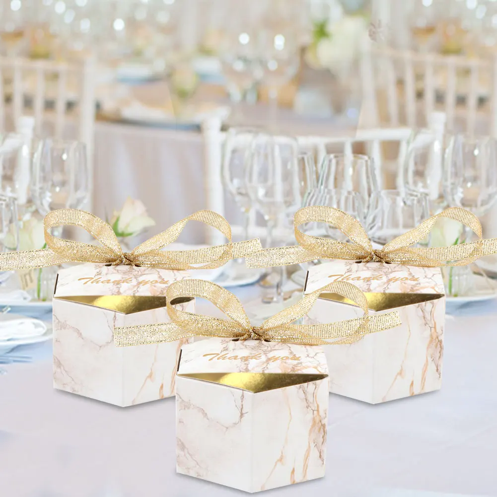 | Boîtes de faveur de mariage en marbre, or | Design exquis, ajoutent une élégance à la fête | Prix élevé |