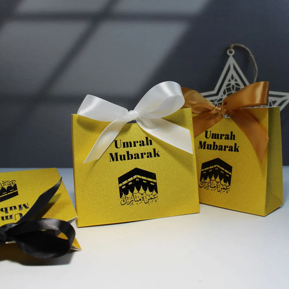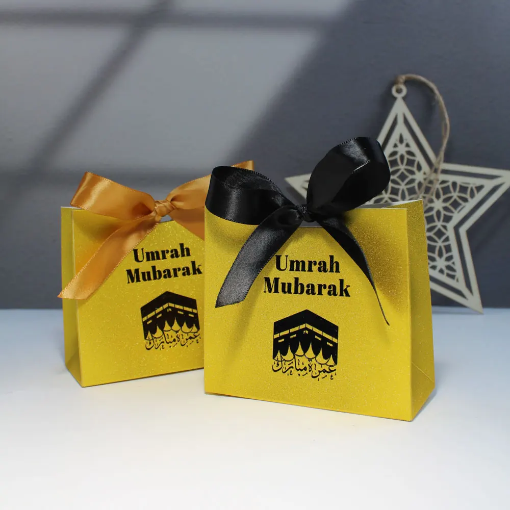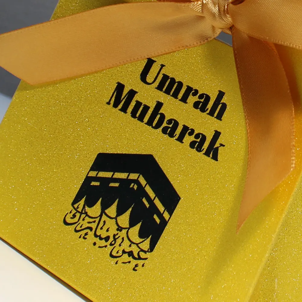 Célébrez la beauté des traditions islamiques avec nos exquis coffrets cadeaux de bonbons brillants mettant en vedette un design unique Kaaba arabe Umrah Mubarak. Ces boîtes ne sont pas seulement des conteneurs; ils sont une déclaration d’élégance et de réflexion, ce qui les rend parfaits pour une variété d’occasions.