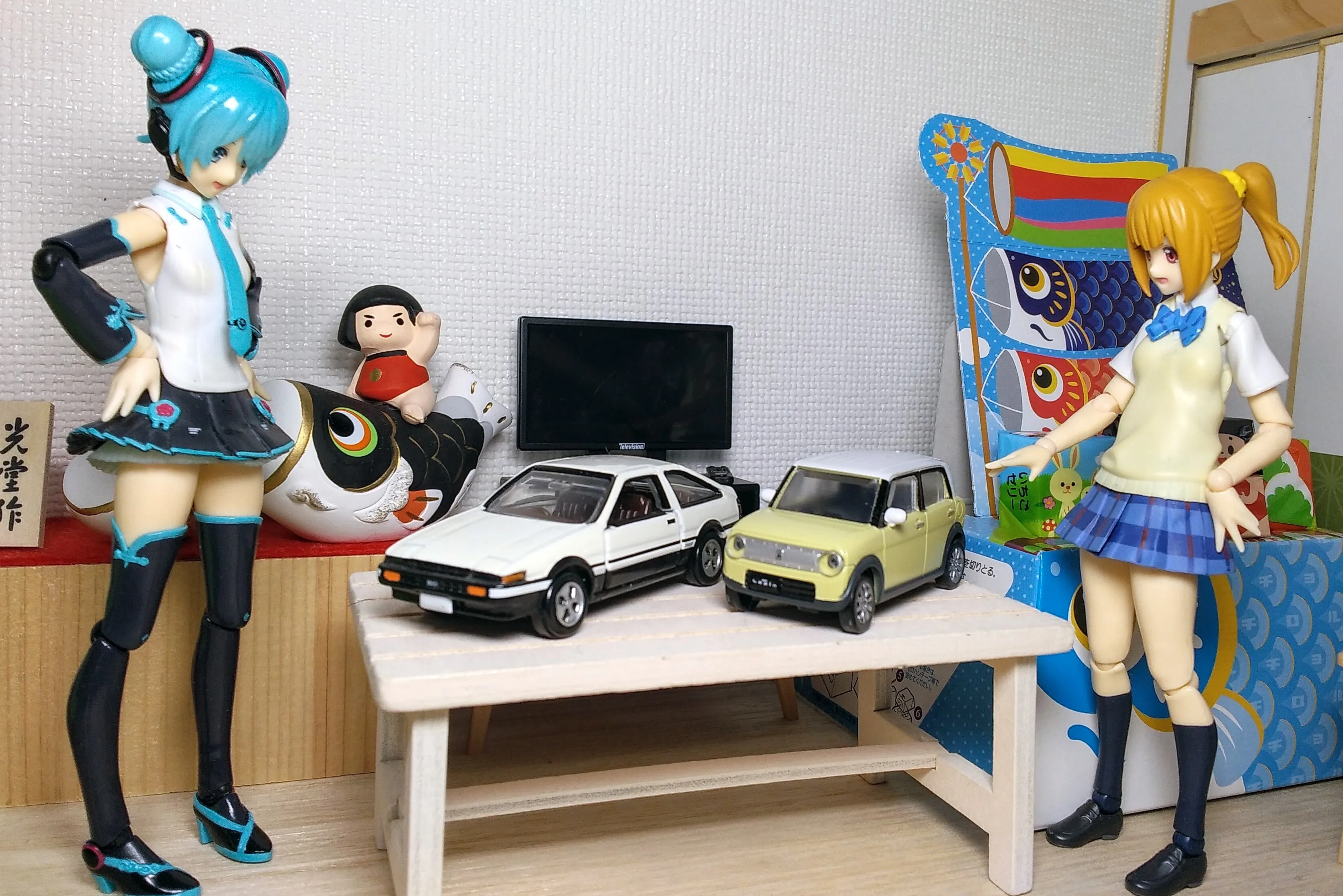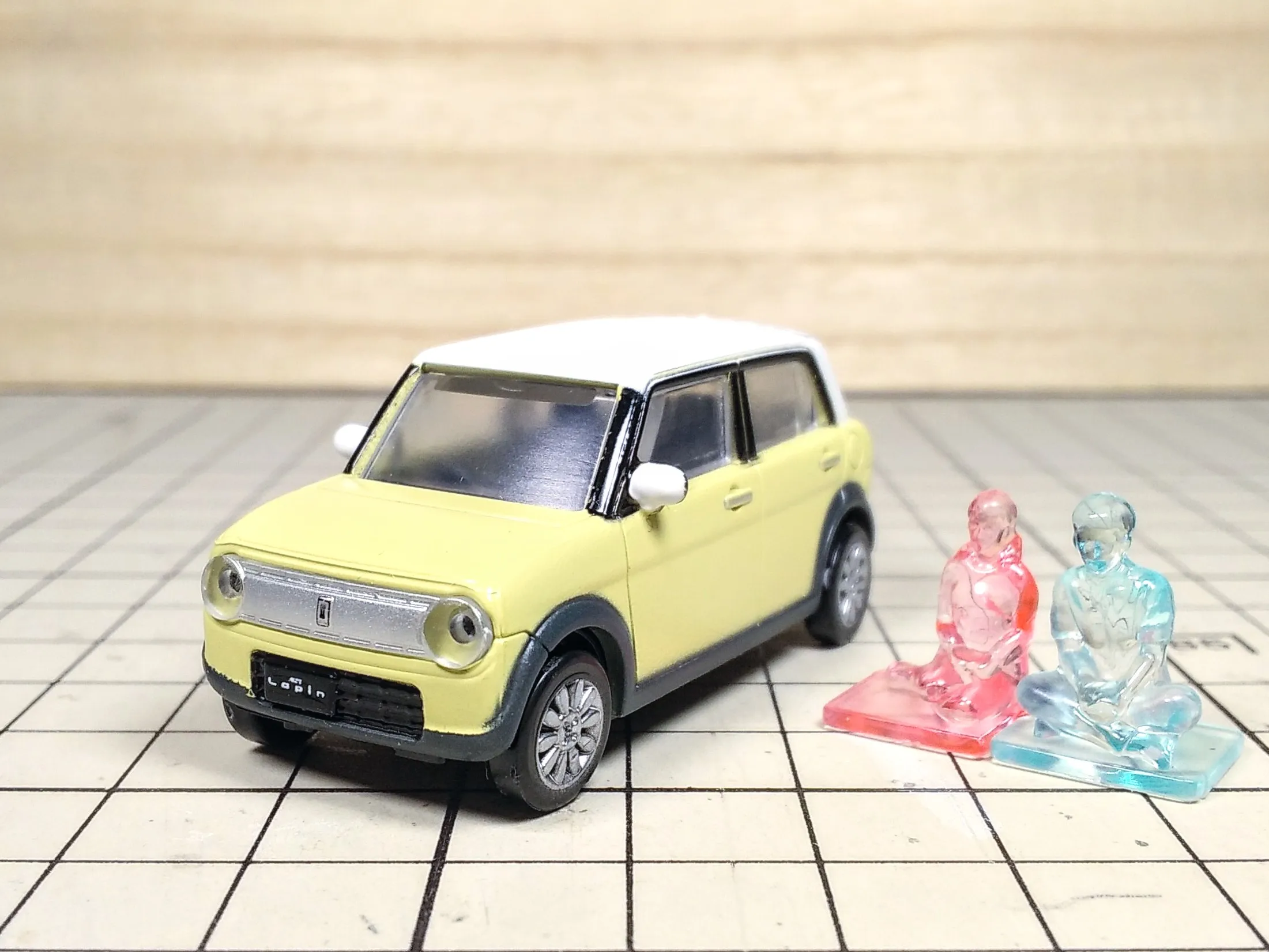 En plus de la minicar, une figurine humanoïde est incluse. Elle est à la même échelle que la voiture 1/64, ce qui permet de recréer différentes scènes en les arrangeant ensemble.