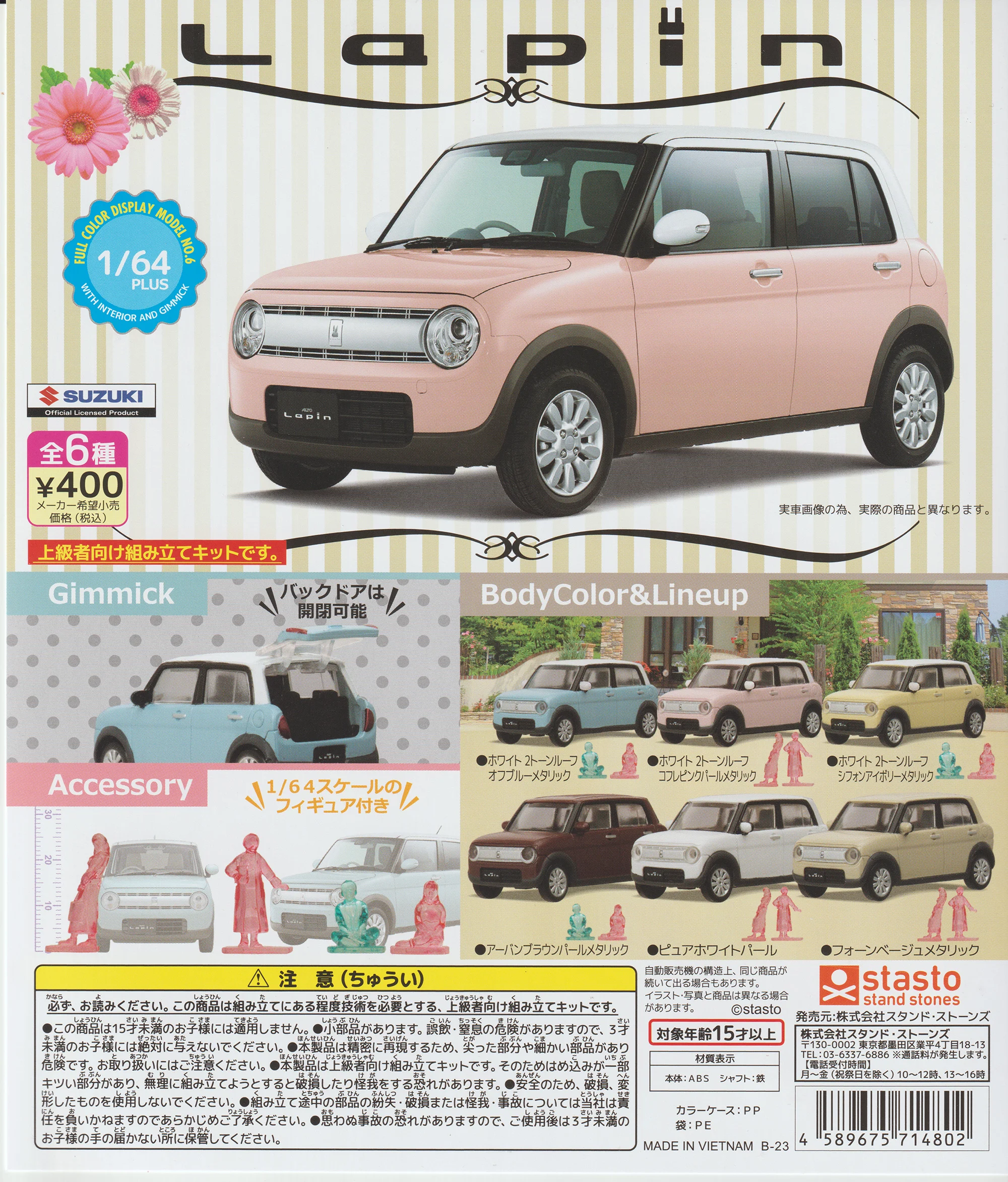 Le Stasto Stand Stone Capsule Toys Chair1/64PLUS, Suzuki Lapin, Assressentià divers minicars, figurines Gashapon est un produit fascinant pour les amateurs de voitures miniatures. La cinquième série de la gamme 1/64 PLUS, ce modèle de Suzuki Lapin est livré avec une fonction d’ouverture et de fermeture de la porte arrière.