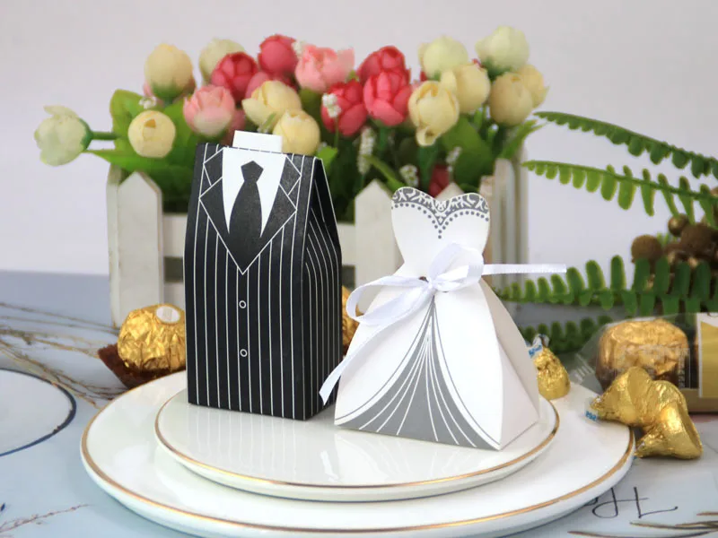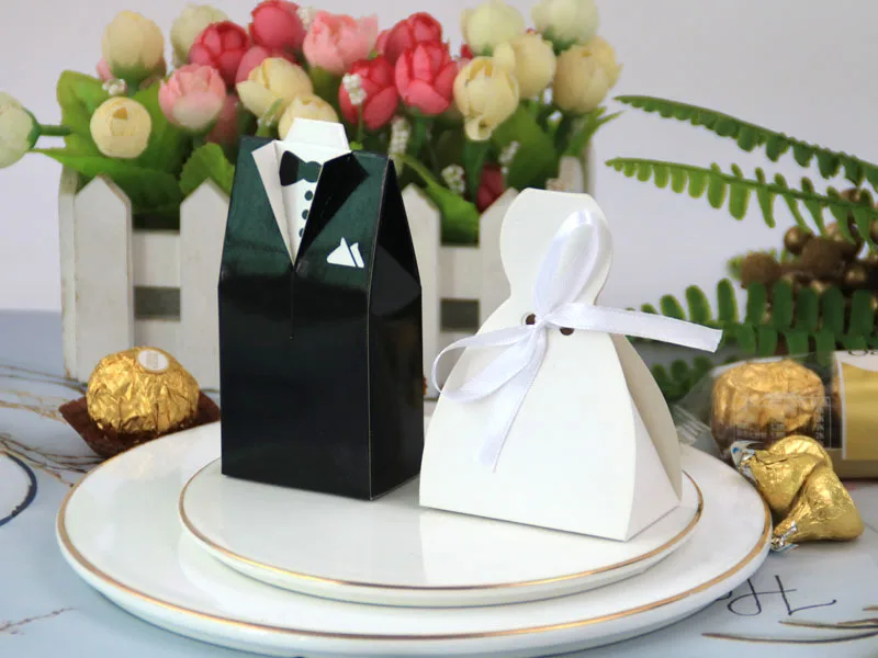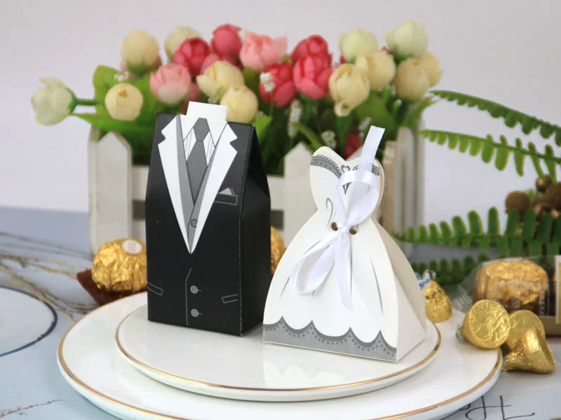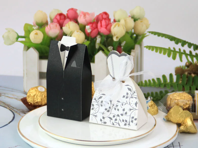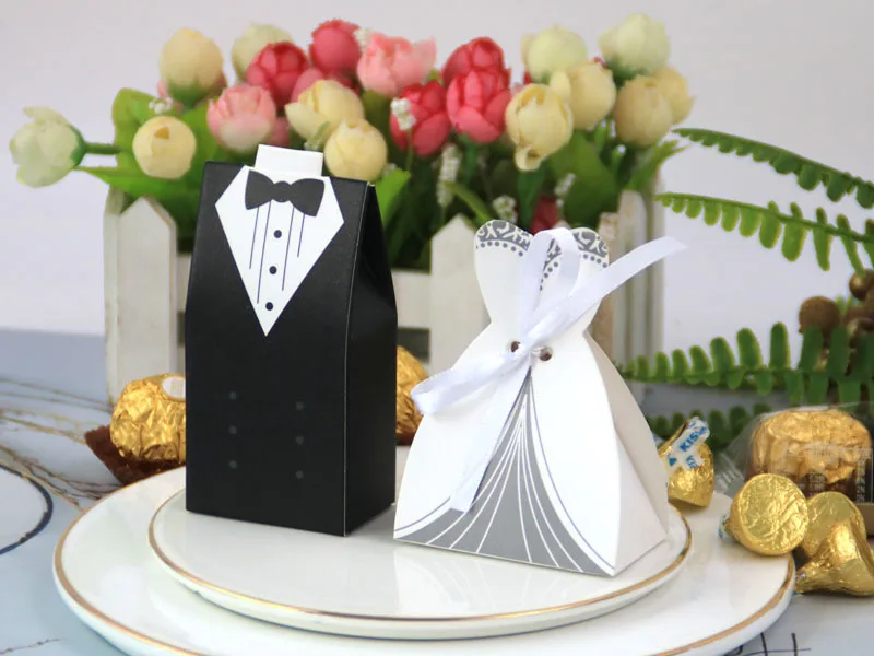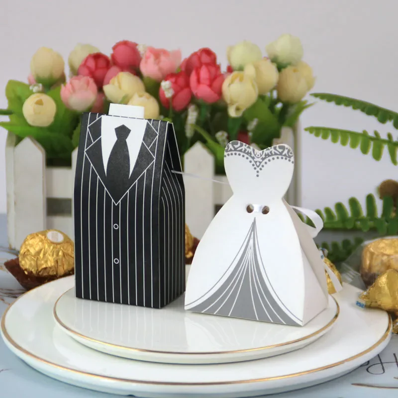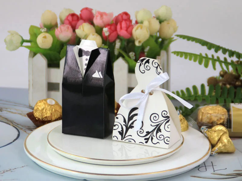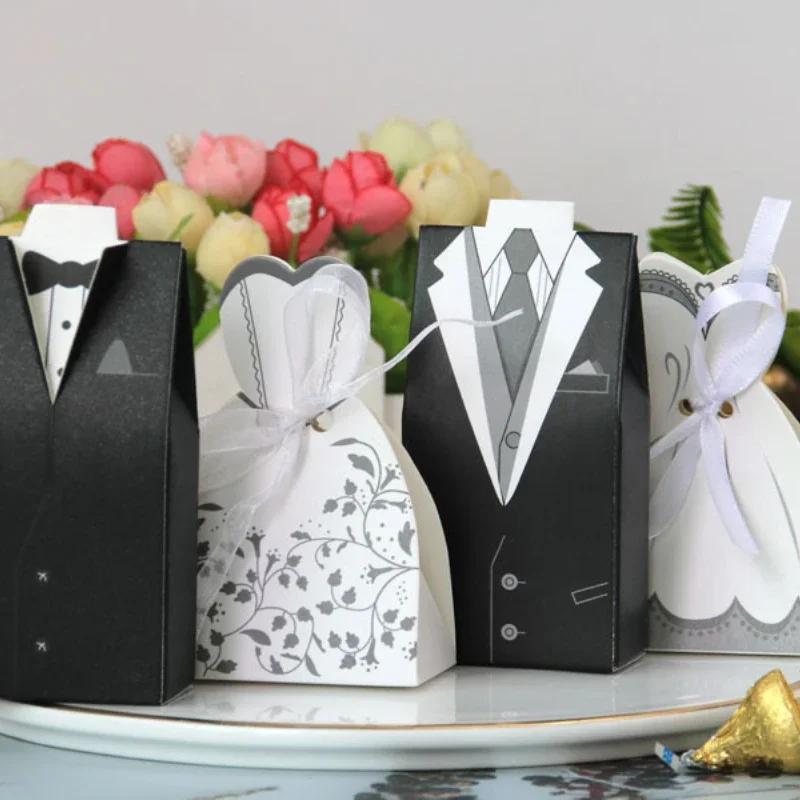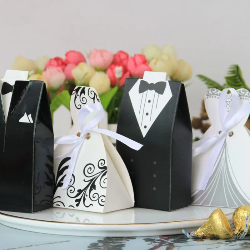 Boîte à bonbons à la fois élégante et adorable. Style européen unique et design unique. Idée astucieuse. Le marié et la mariée portent de belles robes de mariée pour offrir des bonbons de mariage symbolisant le bonheur et la douceur à leurs proches et amis !!!