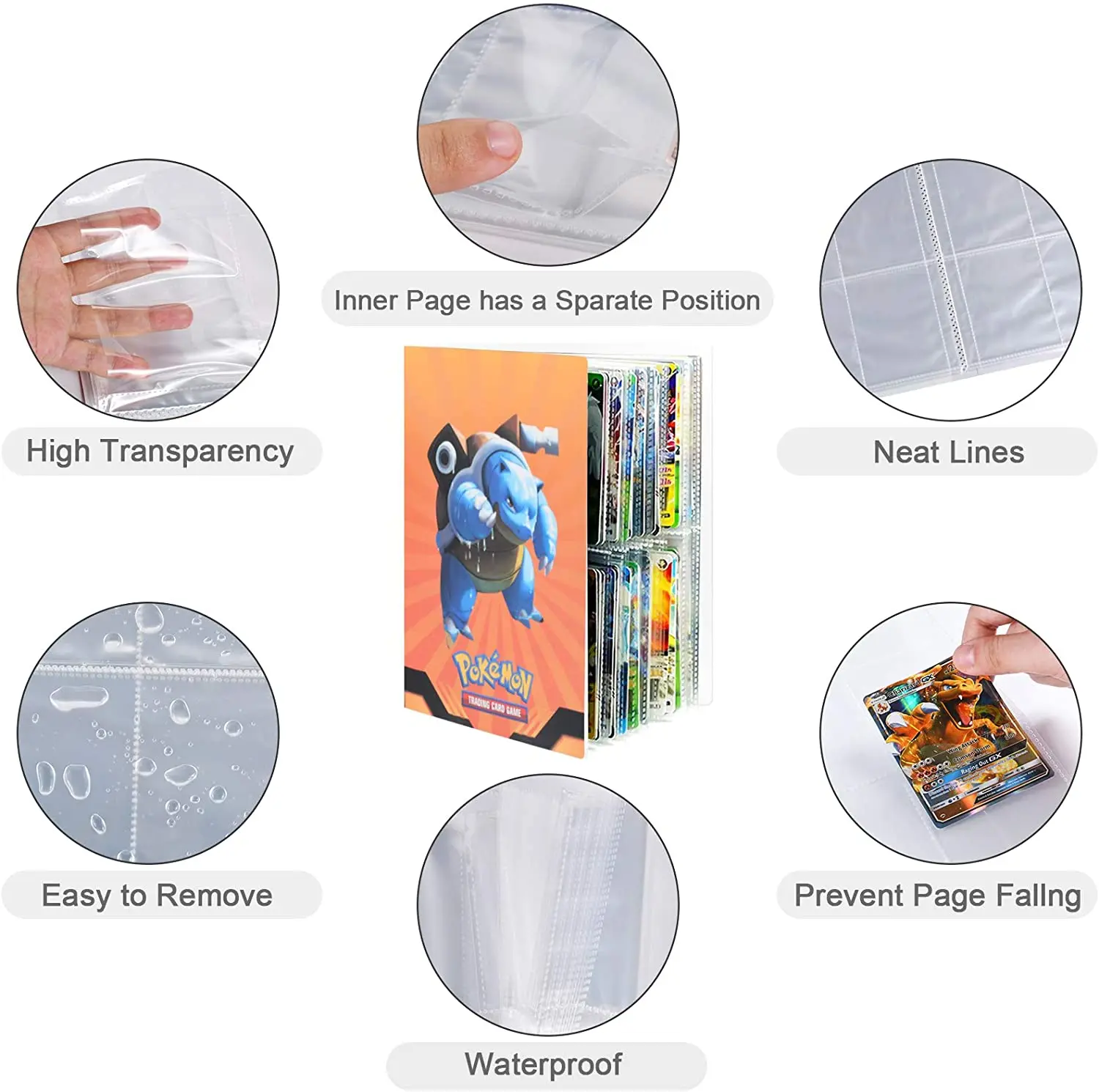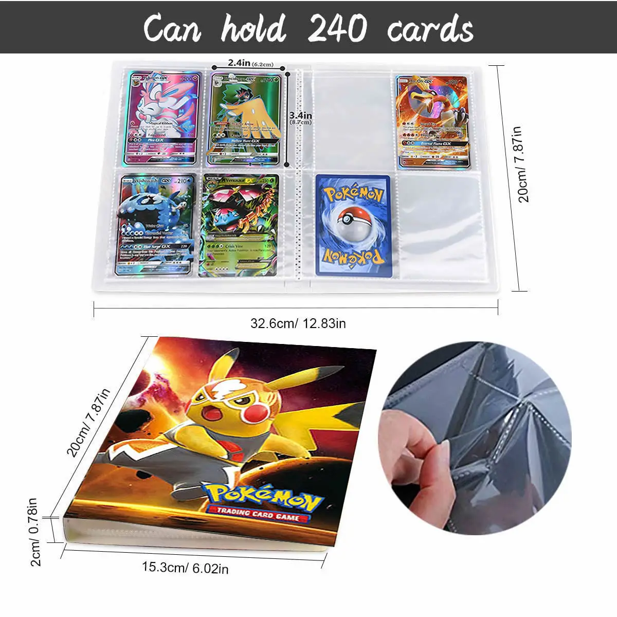 Avec ses 30 pages et 4 poches par page, ce livre d’album peut contenir jusqu’à 240 cartes Pokémon. Les poches ont une taille d’environ 7.3×9.8 cm, ce qui convient parfaitement aux cartes de jeu. Cela permet aux collectionneurs de cartes de garder toutes leurs cartes Pokémon préférées organisées et en parfait état.