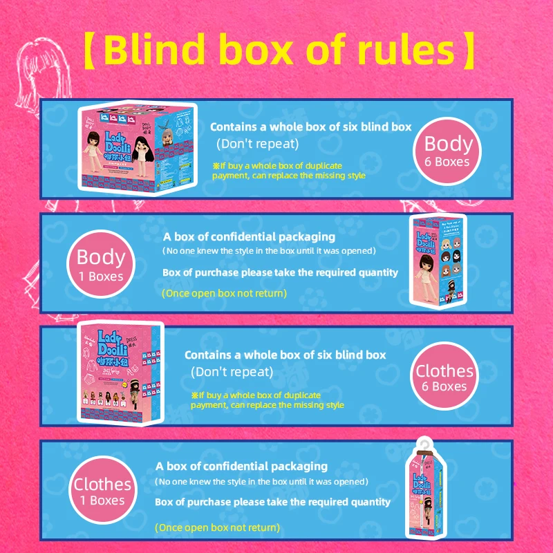 La poupée boîte aveugle Lady Doolmovies est la première boîte aveugle bjd de la marque LadyDoolli. Depuis son lancement, « Miss Dolly » a été aimée par la majorité des blogueurs de mode et des amateurs de poupées bjd.