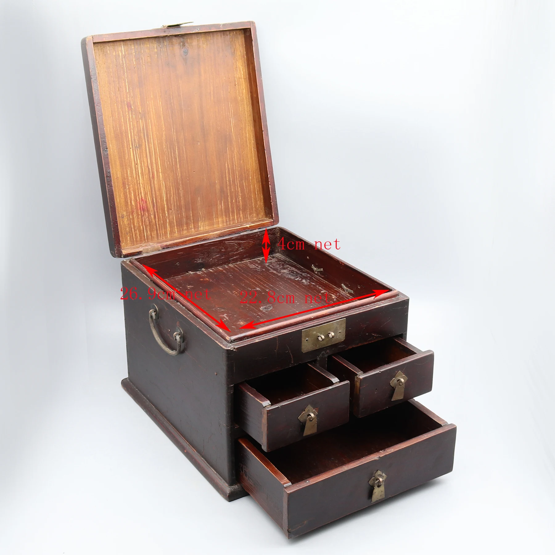 Petite commode à bijoux antique chinoise, ancienne boîte de vanité, décoration de la maison