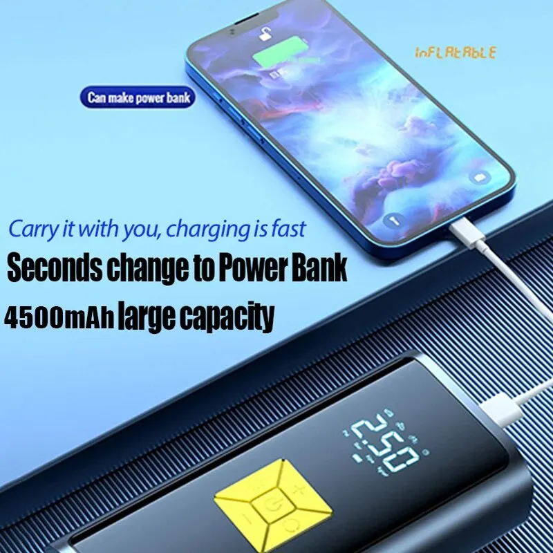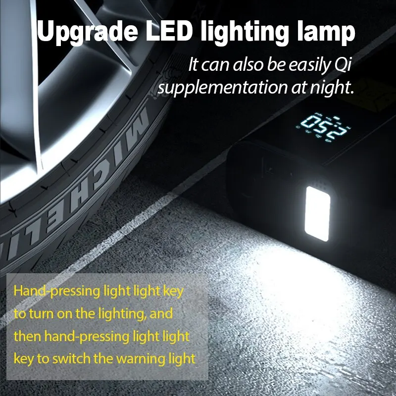 Batterie haute capacitéAvec une capacité de 6000mAh, cette pompe à air peut gonfler les pneus et autres articles gonflables jusqu’à 150PSI sans avoir besoin d’être branché.