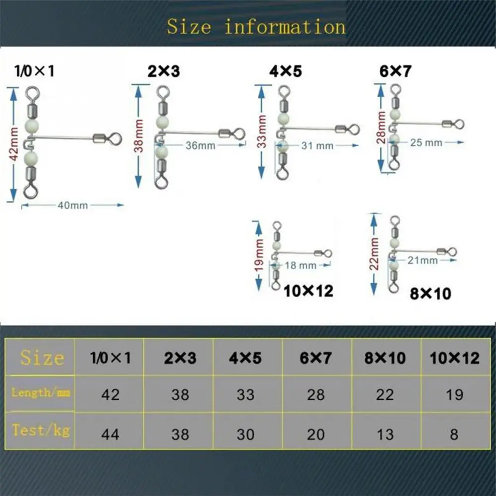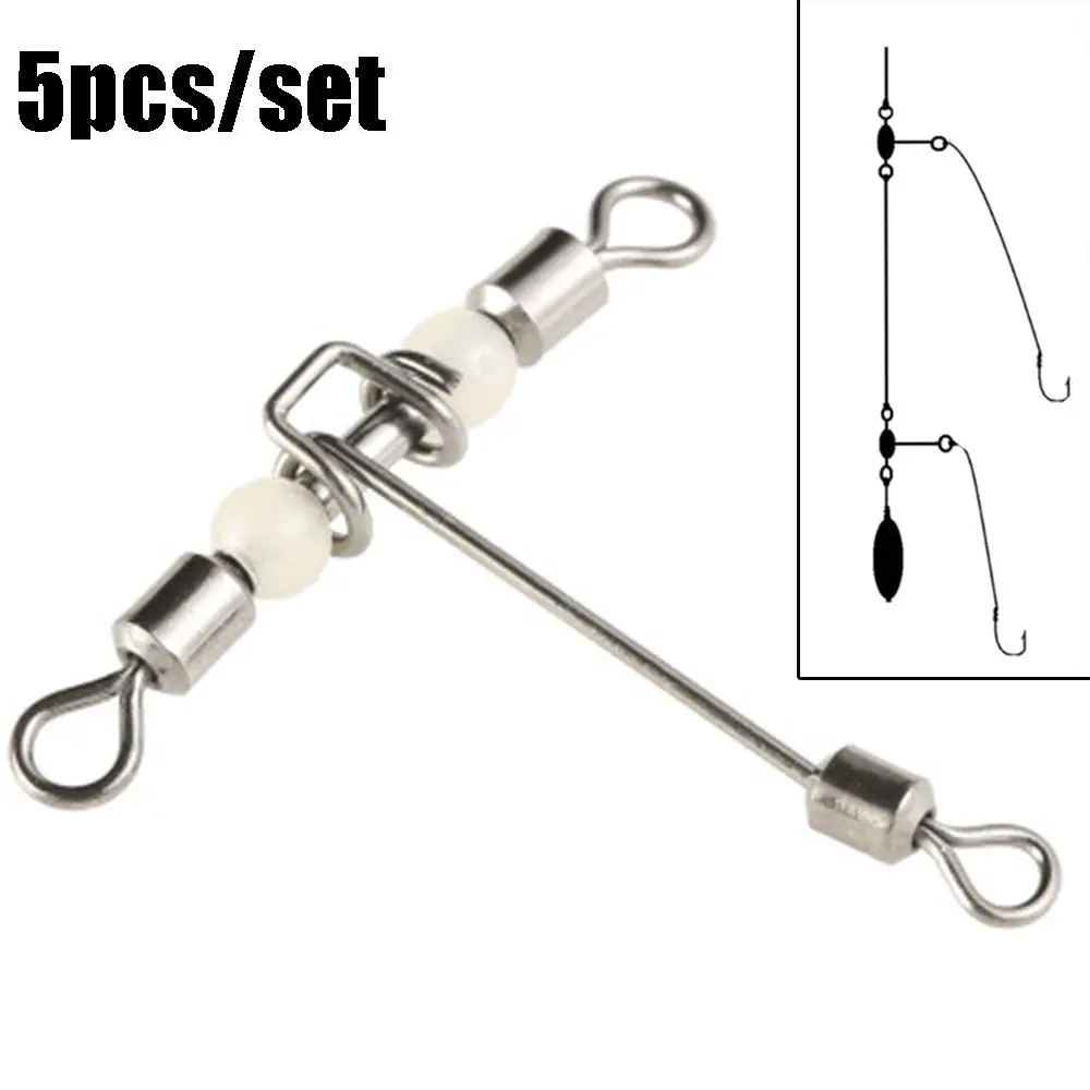 Connecteur d’hameçon de pêche à 3 voies en forme de T, outil à percussion, roulement croisé avec perle, 5 pièces/lot