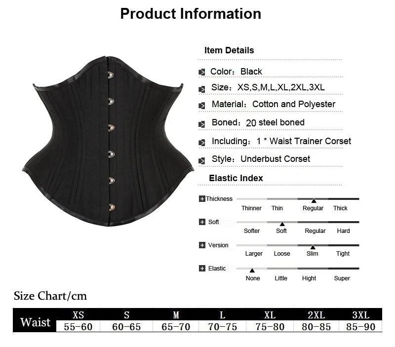 Nos corsets d’entraînement de taille, cintrés de taille, taille-bordures et façonneuses sont dimensionnés par mesure de taille, veuillez donc choisir votre corset en fonction de votre mesure de taille.