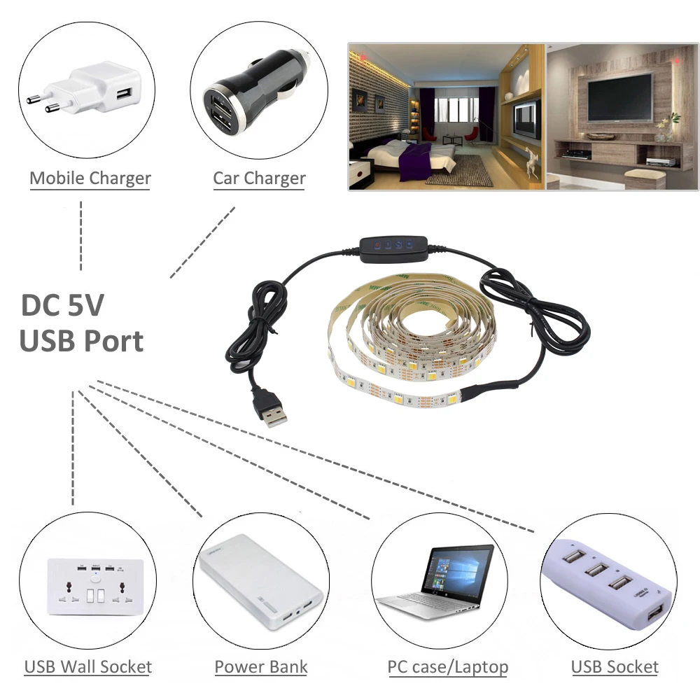 - Nom du produit: Double Blanc Dimmable USB Luminère de bande LED