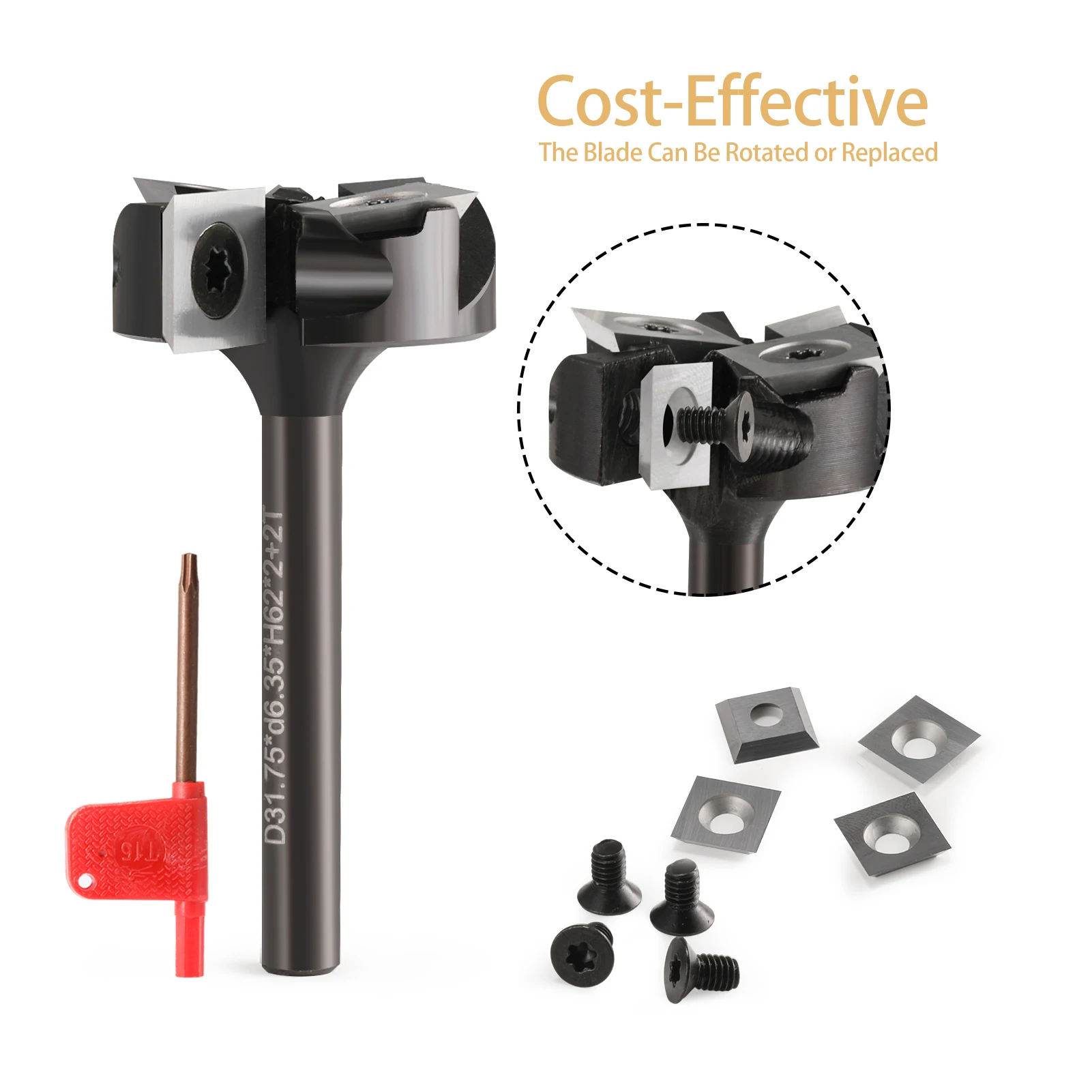 Les fraises à bois d’insertion-Style Spoilboard visage sont des outils de charpentier de haute qualité. Elles sont fabriquées en acier trempé solide et sont conçues pour résister aux rebonds. De plus, elles sont revêtues d’un matériau résistant à la chaleur de téflon, ce qui leur confère une grande durabilité.