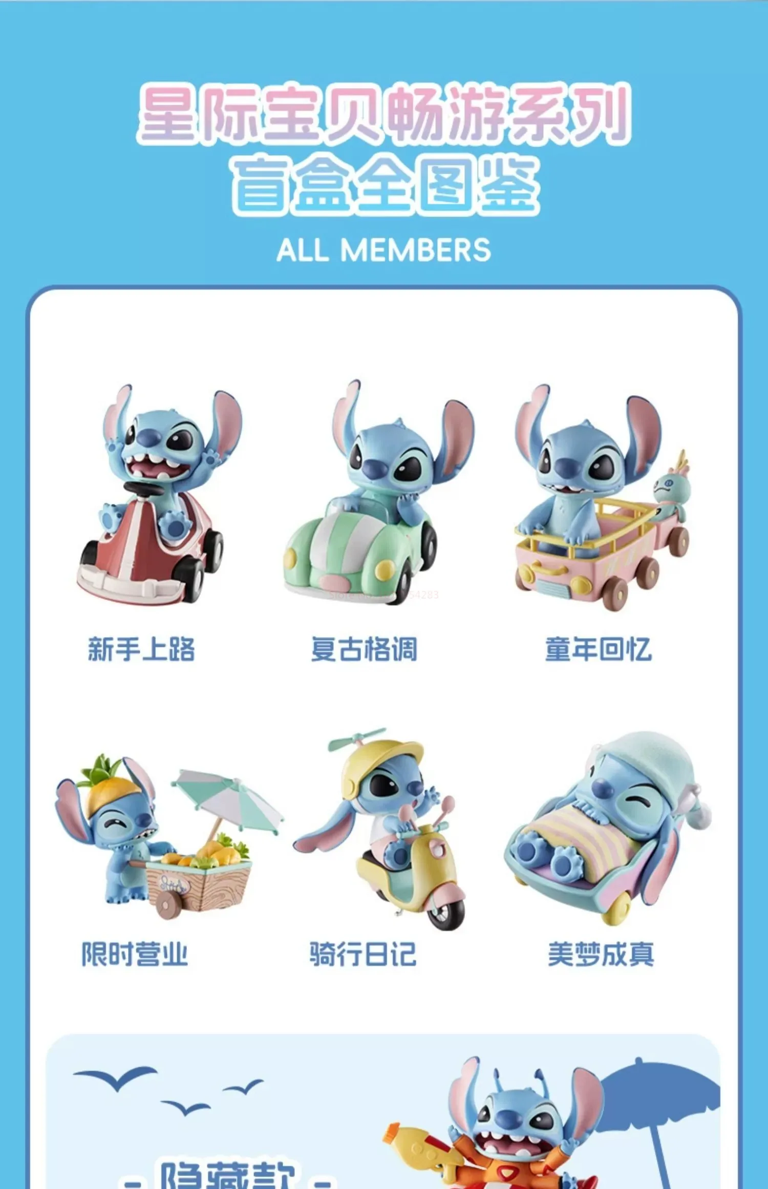 La boîte aveugle Disney-Minso Stitch Blind Box contient un total de 6 styles réguliers et 1 style caché.