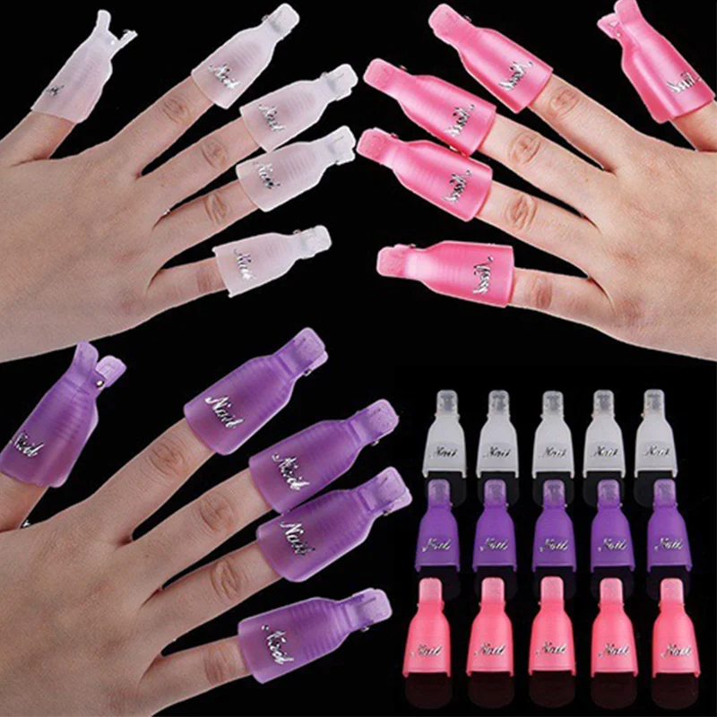 10x Plastique Nail Art Soak Off Cap Clip UV Gel Polish Remover Wrap Tool