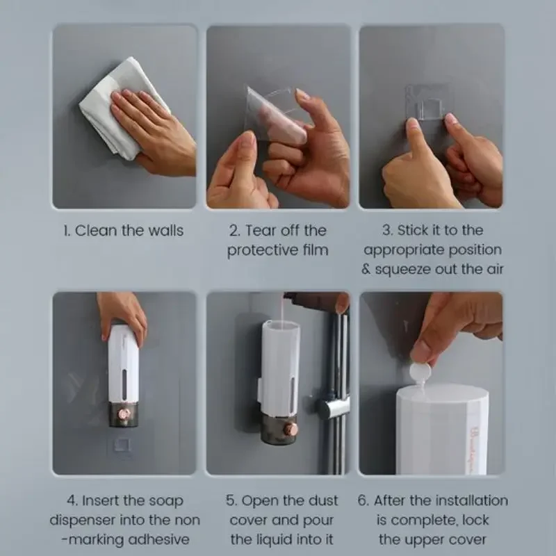 Facile à installer en seulement 6 étapesPeut ne pas convenir à tous types de liquides (gel douche, shampoing, désinfectant pour les mains)