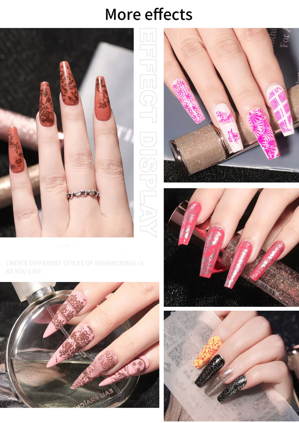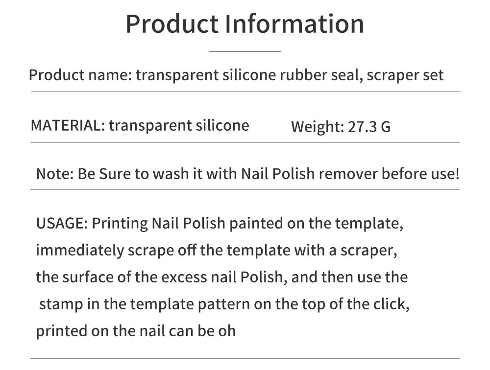 Le Tampon à Ongles en Silicone à Double Tête est un outil pratique et professionnel pour les passionnés de nail art. Sa double tête offre une variété de formes pour une conception personnalisée. Le matériau en silicone et plastique assure une utilisation durable et facile. Son utilisation est simple, il suffit de déchirer le film sur la plaque d’impression, d’appliquer le vernis à ongles sur le motif souhaité et d’imprimer le motif sur l’ongle à l’aide du tampon. Cependant, il est important de noter que les tailles des différents styles peuvent varier et que le set ne contient qu’un seul tampon. Dans l’ensemble, c’est un produit pratique pour les amateurs de nail art.