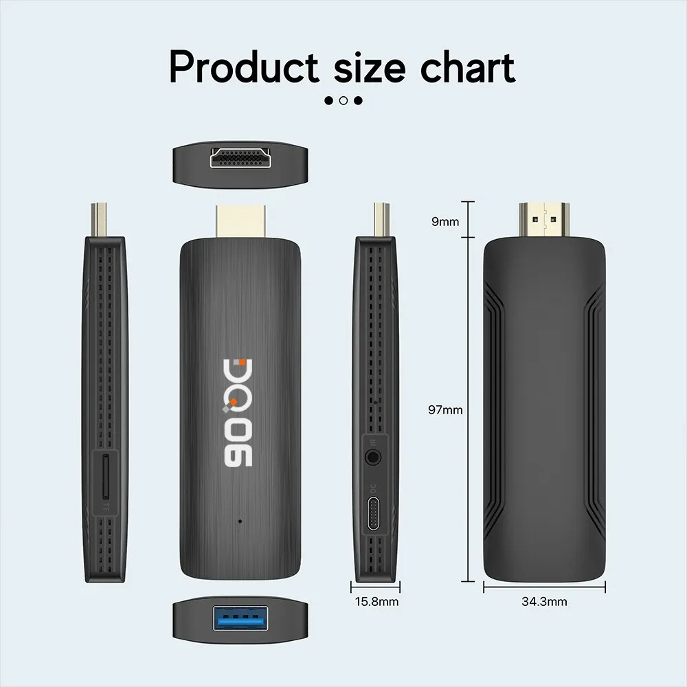 DQ06 TV Stick Découvrez le nouveau standard de Smart TV. Portale streaming TV stick, alimenté par android, petit mais puissant. AndroidTVOS offre une expérience plus riche avec des applications de qualité supérieure et des temps de réponse rapides.