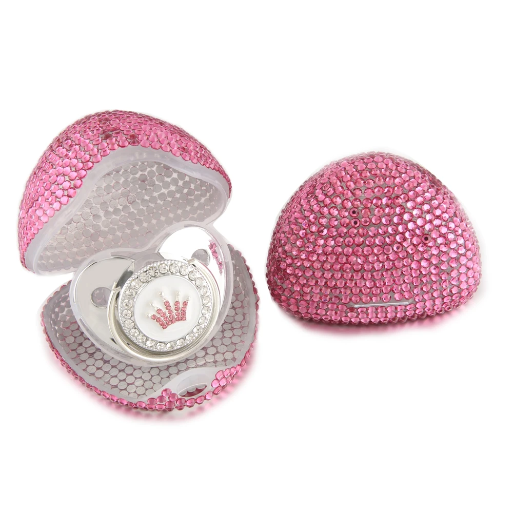 Bling bébé sucette boîte de rangement factice conteneur anti-poussière sucette support étui avec strass luxe sucette boîte