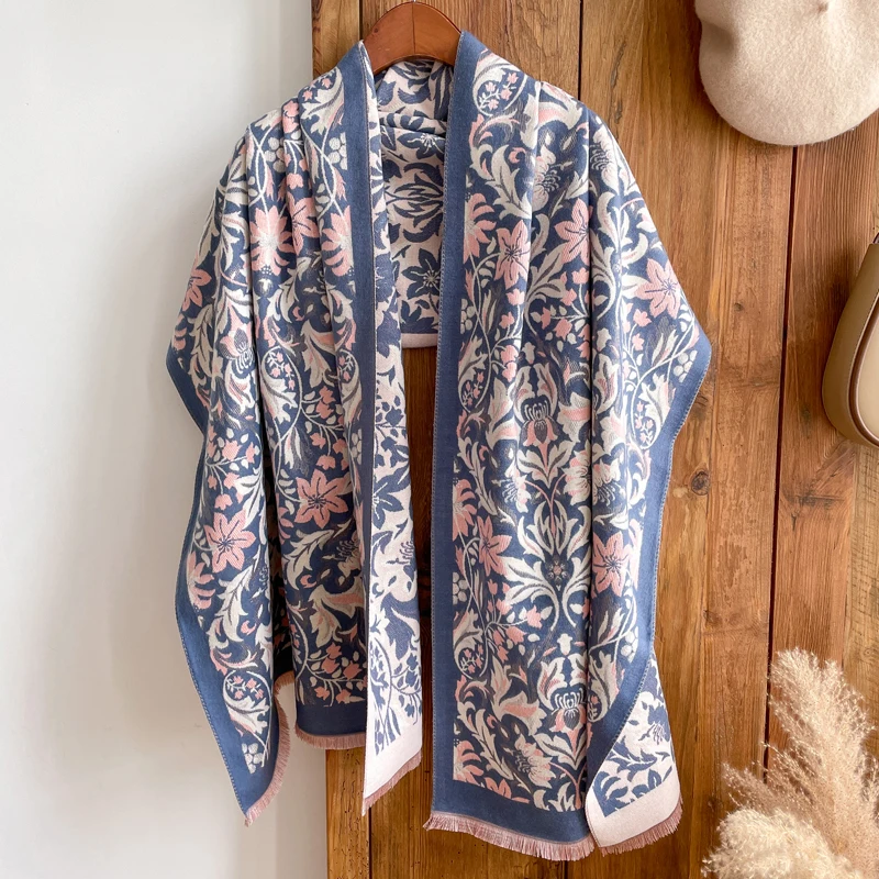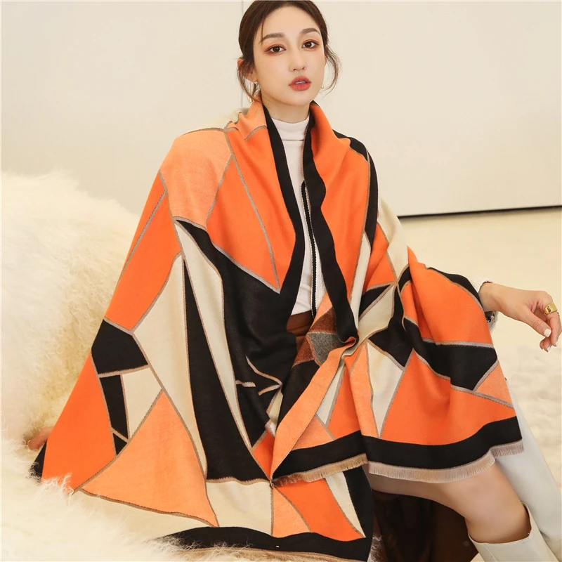 Optique-Écharpe en Cachemire Chaude pour Femme, Hijab Imprimé Double Face, Châle Pashmina et Rond, Écharpes de Sauna de Luxe, Bufanda Echarpe, Hiver 2023