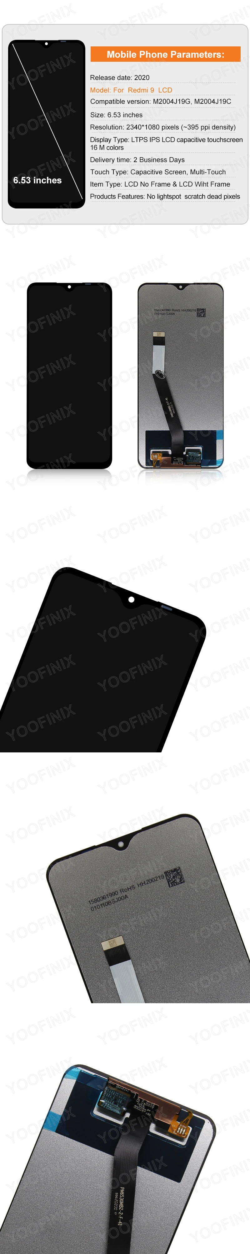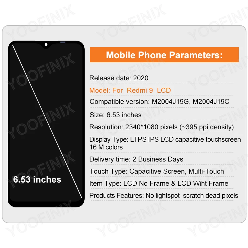 Le numériseur d’écran tactile LCD pour Xiaomi Redmi 9 est une pièce de rechange d’affichage de qualité. Il est compatible avec les modèles M2004J19G et M2004J19C et offre une garantie de 6 mois. L’équipe professionnelle de contrôle qualité garantit un travail parfait et une inspection rigoureuse avant l’expédition.