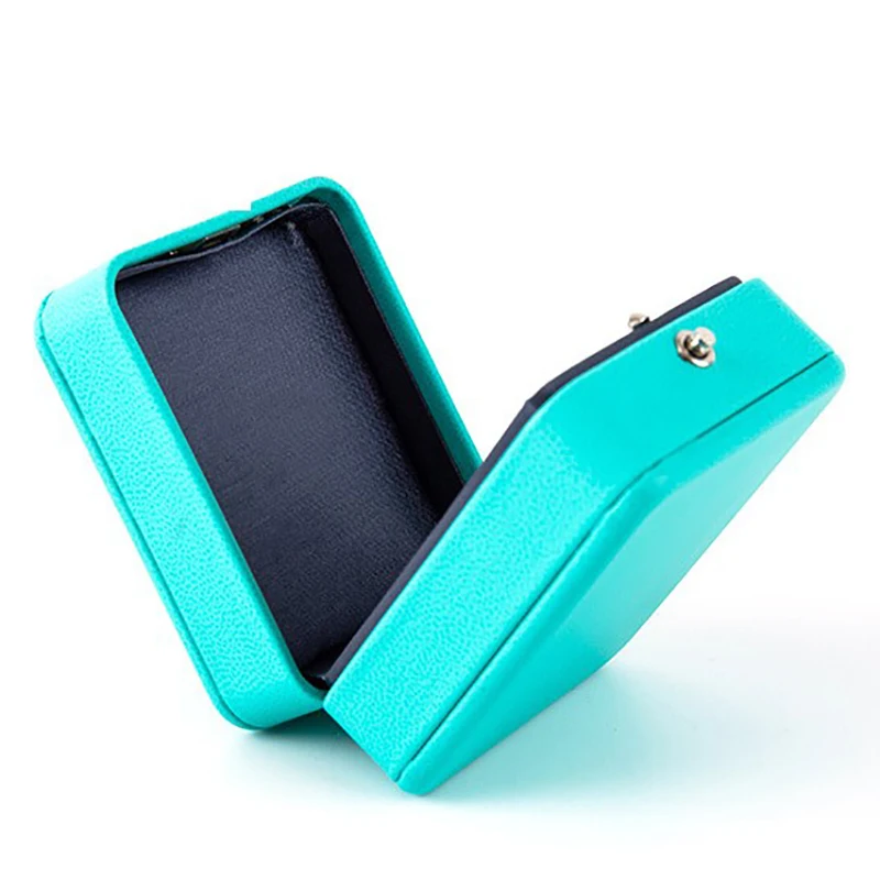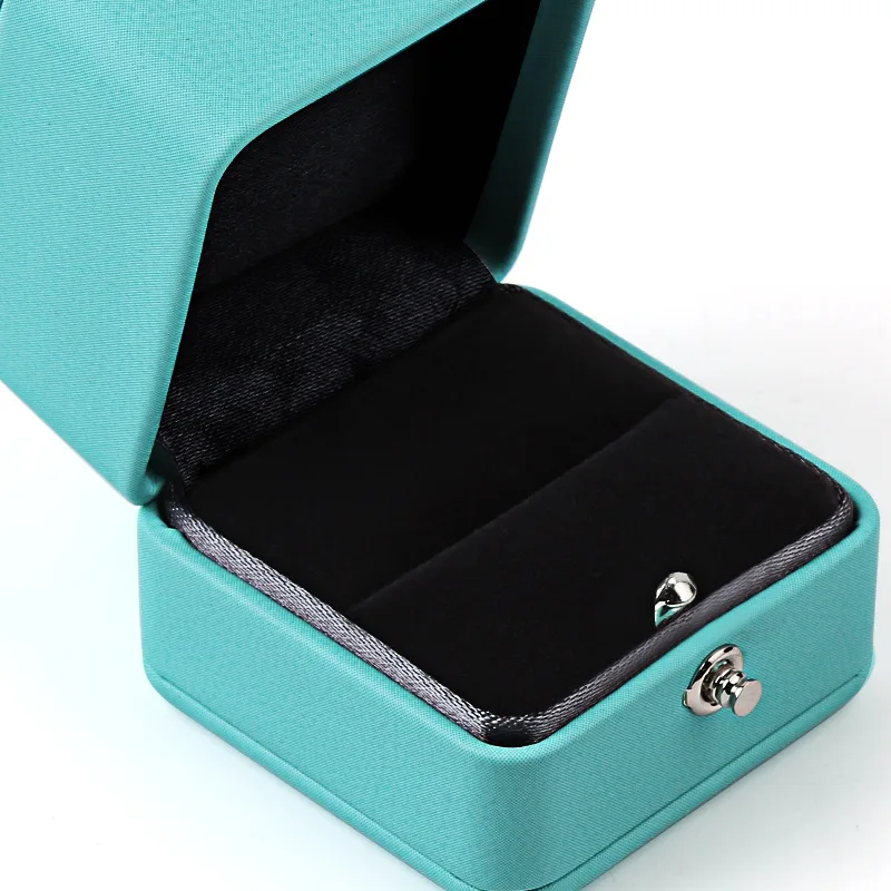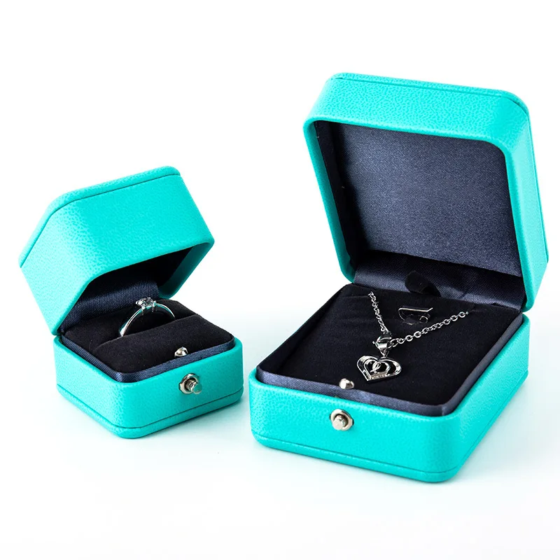 - Nom du produit: Luxe romantique bleu cuir bijoux cadeau boîte bague boîte collier boîte anneau emballage stockage anneau organisateur pour mariage proposer