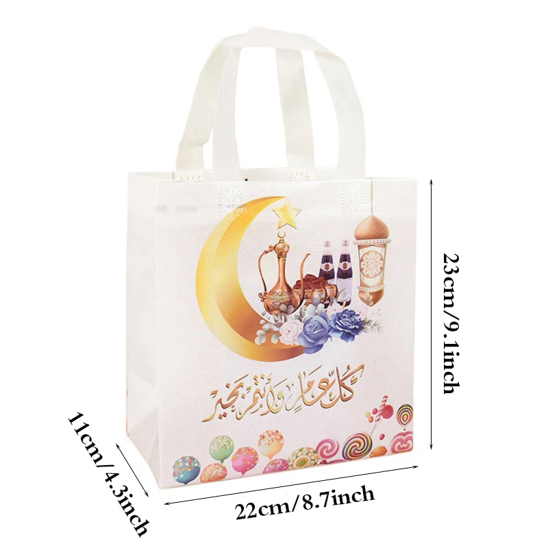 Les sacs-cadeaux non tissés pour Eid Mubarak sont des produits de haute qualité, légers et sans odeur. Leur fond robuste les rend suffisamment solides pour contenir les petits cadeaux que vous souhaitez offrir. Leur design accrocheur et unique est parfait pour la fête de l’Aïd et ravira vos invités. Avec une quantité de 6 pièces, ces sacs-cadeaux sont parfaits pour toutes vos occasions festives. Cependant, veuillez noter qu’il peut y avoir de légères différences de dimension et de couleur en raison de mesures manuelles et des variations de lumière et d’écran.