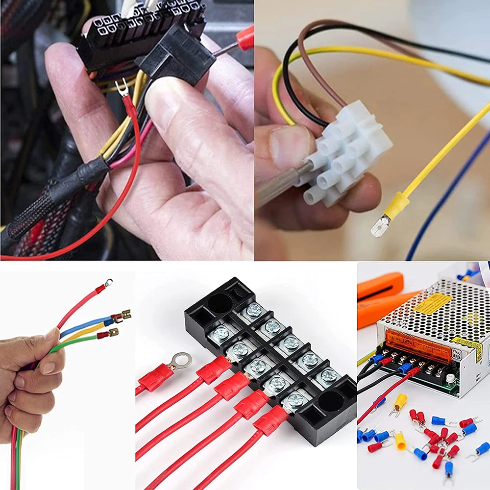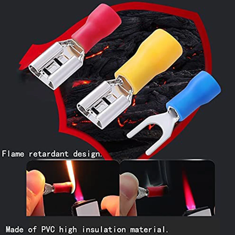 Ces kits de cosses de câble sont en cuivre + PVC + fer blanc. Gamme de câbles: AWG 22-16 (rouge), AWG 16-14 (bleu), AWG 12-10 (jaune)