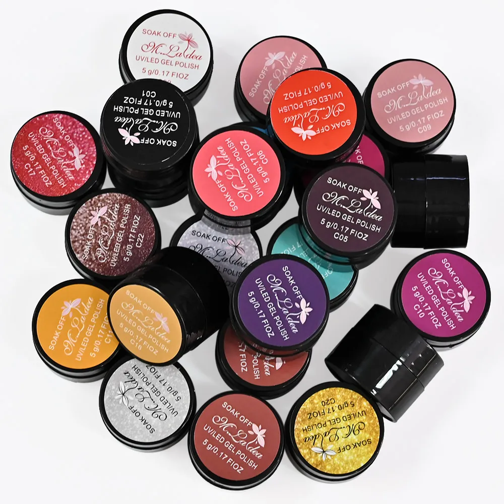 Les couleurs du vernis gel peuvent légèrement varier par rapport à celles de l’image en raison des différences d’éclairage et des réglages d’écran. Il est recommandé de se référer à la description de chaque couleur pour avoir une idée plus précise de la teinte.
