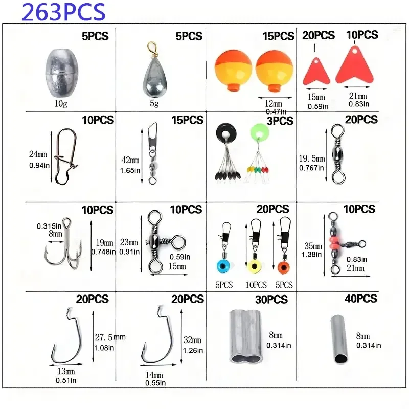 Ensemble complet:Cet ensemble comprend 263 accessoires de pêche essentiels, ce qui en fait une solution complète pour tous vos besoins de pêche.