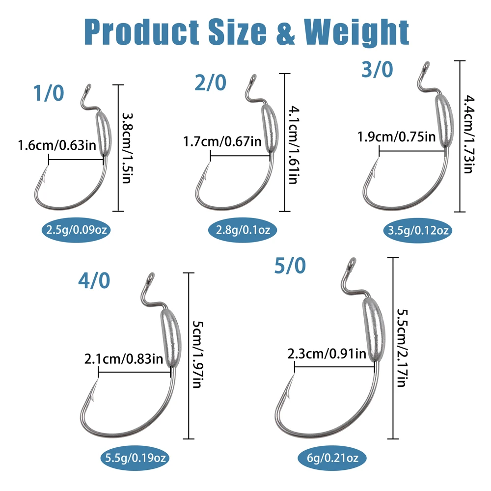 Les hameçons à vis sans fin à tête plombée offrent un large écart, ce qui permet de mieux attraper le poisson. Ils sont résistants à la rouille, grâce à leur crochet 2X fort et leur pointe d’aiguille super pointue. Ils garantissent fiabilité, durabilité et résistance.