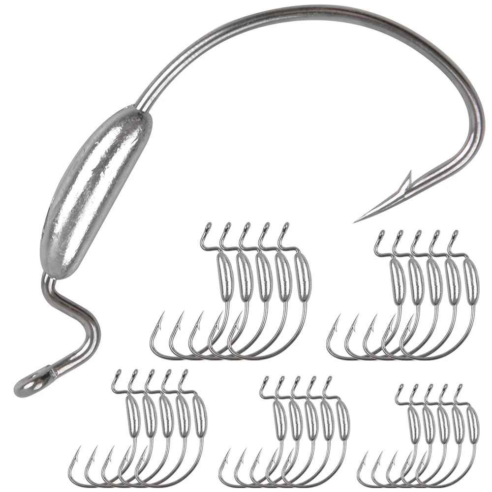 Test et avis sur les « Hameçons à vis sans fin à tête plombée, manivelle incurvée décalée, barbelé, large écart, pêche au bar, hameçon Texas Rig, eau salée, eau douce, 25 pièces »