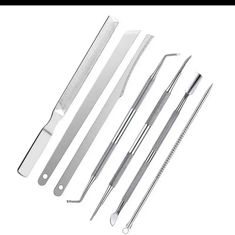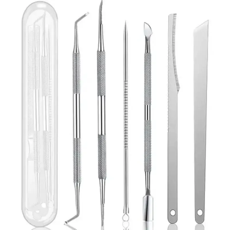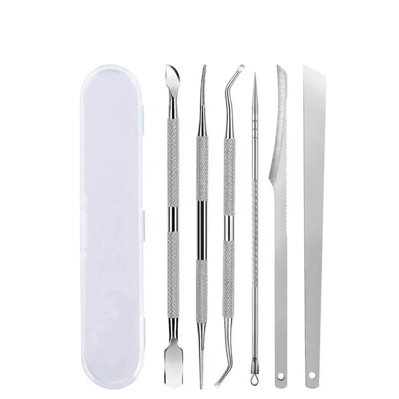 Le couteau de manucure et pédicure en acier inoxydable est un ensemble d’outils comprenant 6 pièces conçues pour enlever les callosités de la peau, couper les ongles durs et traiter l’acné. Ces outils sont en acier inoxydable, ce qui les rend durables et résistants à la corrosion.