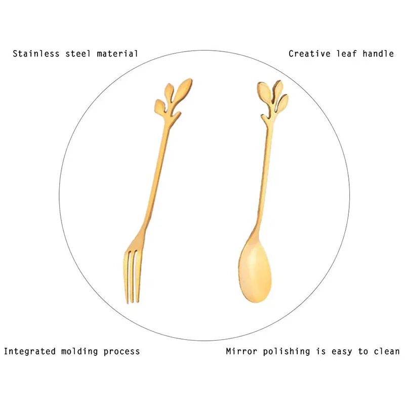 Fabriqué en acier inoxydable de haute qualité 410, cet ensemble de couverts de cuisine est durable et résistant à la rouille. Sa conception d’une seule pièce le rend facile à nettoyer sans laisser de saleté. De plus, son design poli miroir le rend lisse et beau. L’utilisation intelligente de la conception de branche/feuille lui confère une élégance et une beauté uniques. Disponible en or