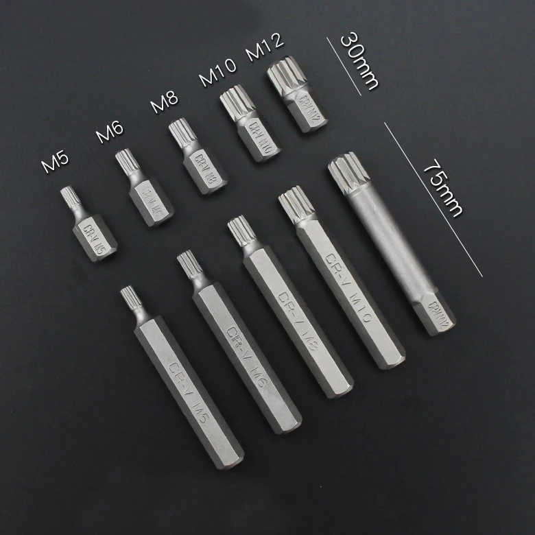 Torx: T20, T25, T30, T40, T45, T50, T55XZN: M5, M6, M8, M10, M12