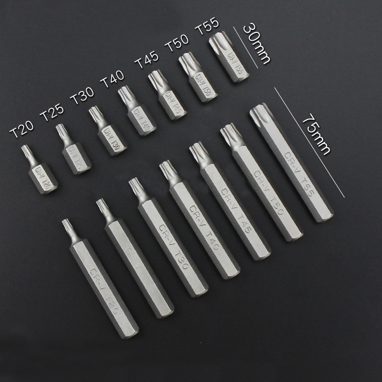 Torx: T20, T25, T30, T40, T45, T50, T55