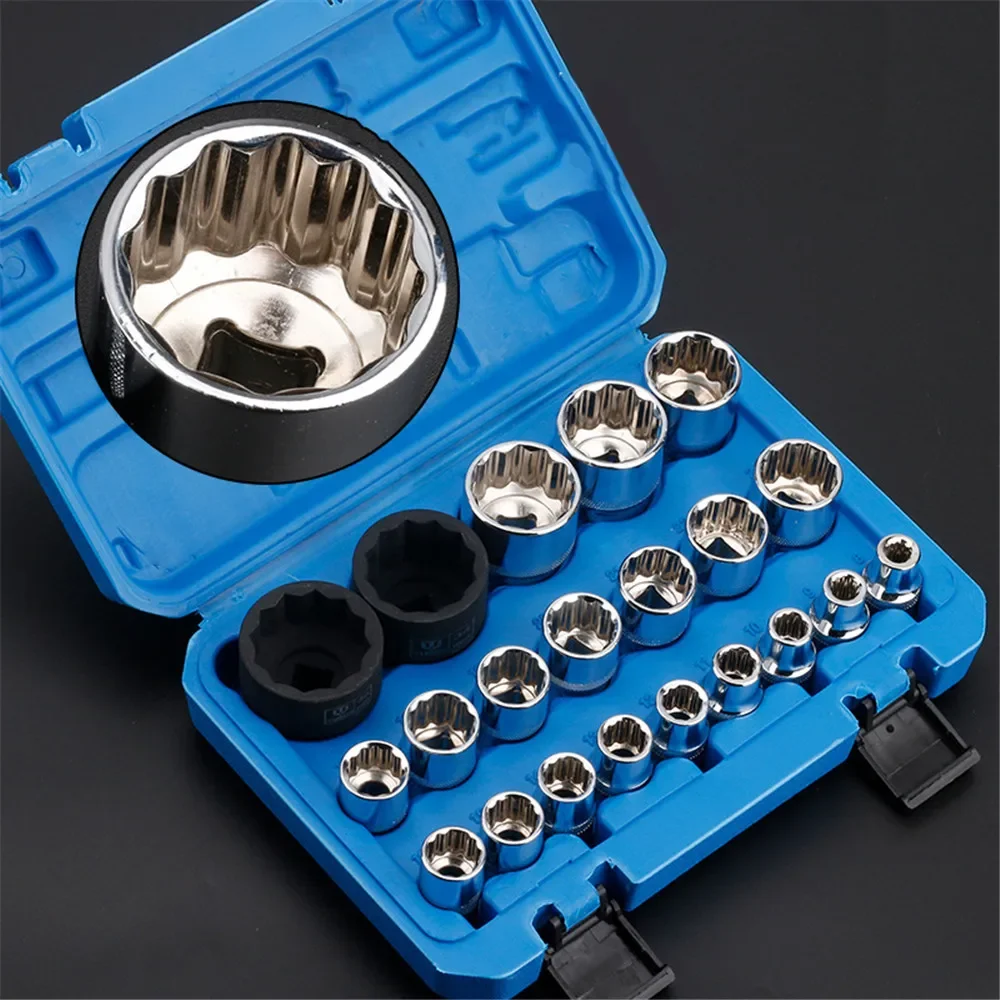 Ce jeu de douilles Torx hexagonales est un ensemble polyvalent de 21 pièces qui convient parfaitement pour la réparation automobile. Les douilles sont fabriquées en CR-V, un matériau de haute qualité qui garantit leur durabilité. Elles sont adaptées pour le démontage des angles à quatre coins, hexagonaux et à 12 points, ce qui les rend très polyvalentes. De plus, grâce à leur forme spéciale, elles peuvent être utilisées même lorsque la fixation de la tête est usée. Ce jeu de douilles offre une grande satisfaction à ses utilisateurs grâce à sa qualité stable et sa longue durée de vie.