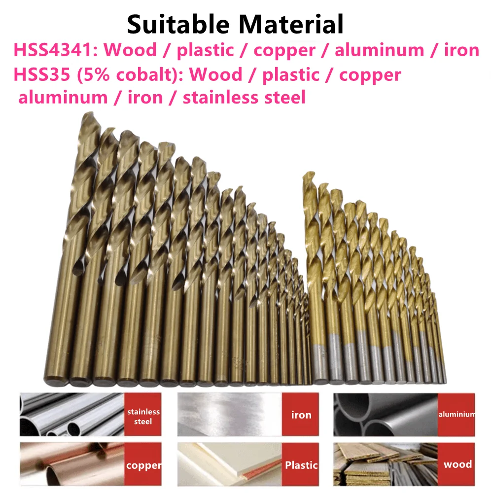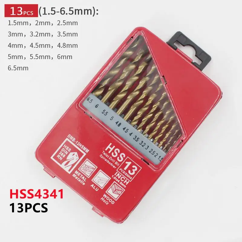 Cet ensemble comprend trois tailles différentes de forets: 13 pièces (1.5-6.5mm), 19PCS (1.0-10.0mm) et 25PCS (1.0-13.0mm). Les forets sont compatibles avec la plupart des mandrins de forage grâce à leur tige ronde droite.