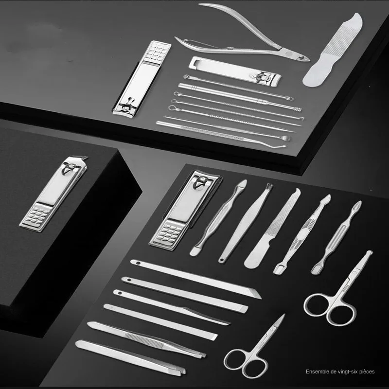 • Inclus coupe-ongles, pince à cuticules, outil de soins de pédicure, ciseaux pour peaux mortes, etc.