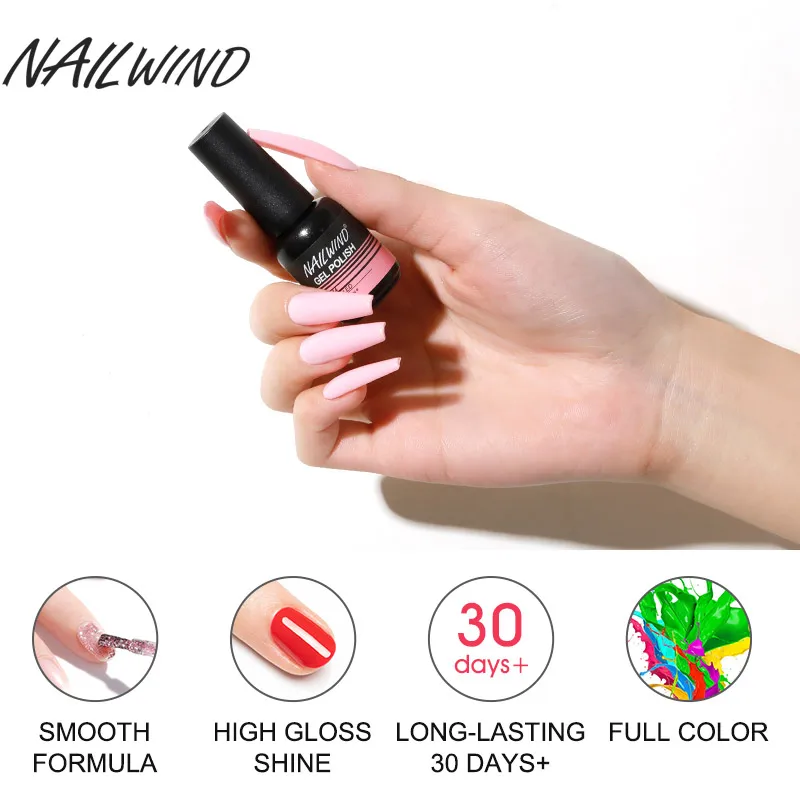 Voici les étapes à suivre pour utiliser le NAILWIND-Ensemble de Verhéritage à Ongles UV Semi-Permanent :