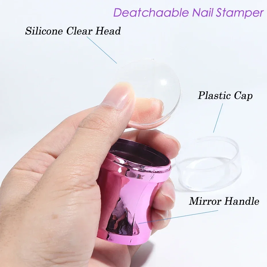 Le kit de tampons à ongles miroir en Silicone transparent est un outil de manucure pratique pour créer des designs d’ongles uniques. Il comprend un stamper, deux grattoirs et un capuchon pour une utilisation facile et hygiénique. La tête du tampon est en silicone souple, ce qui facilite le transfert du vernis sur les ongles. Disponible en plusieurs couleurs, ce kit offre une large gamme d’options de design pour vos ongles.