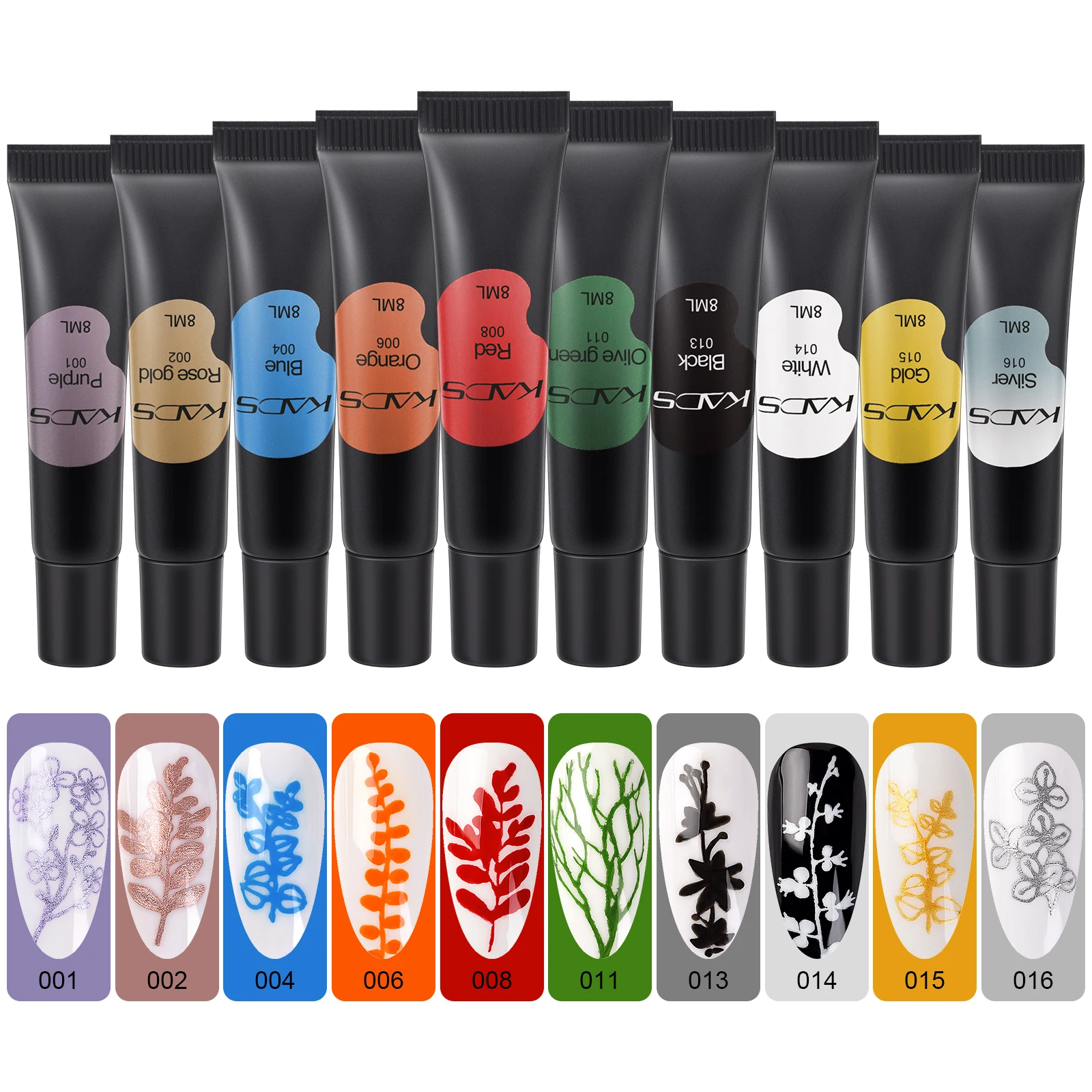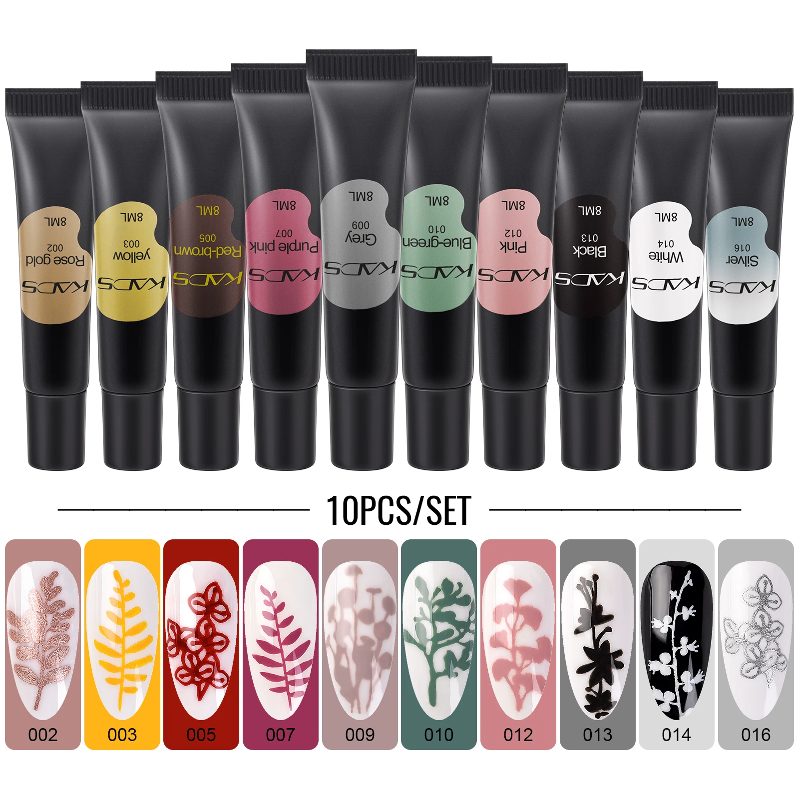 L’ensemble KADS Ensemble de Vernis à Ongles en Gel d’Estampage contient 10 bouteilles de gel.