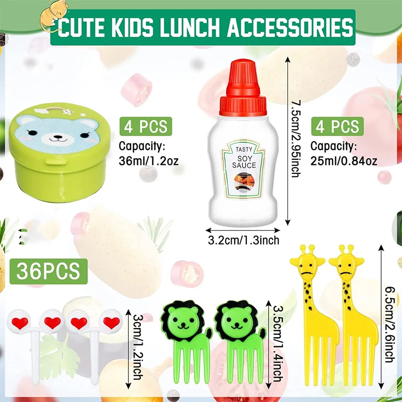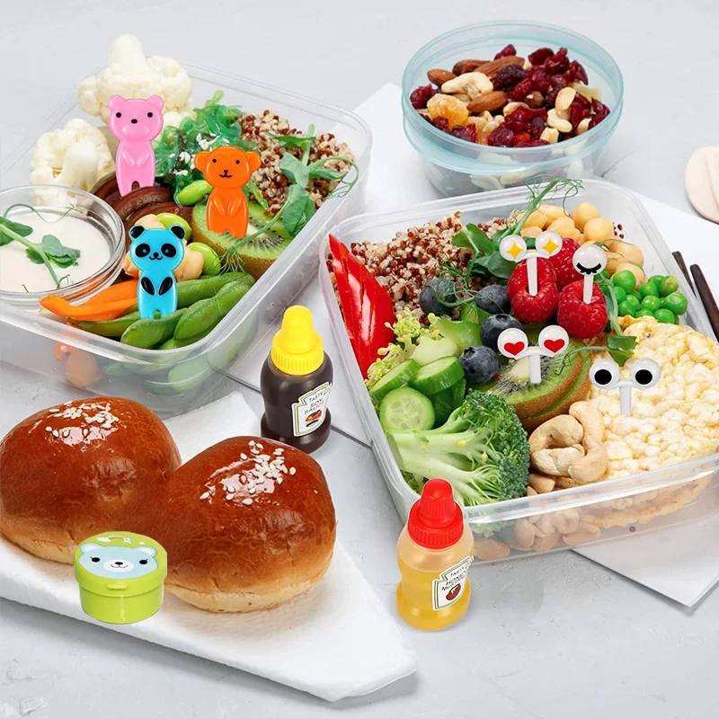 Ces mini bouteilles de condiments pour enfants sont idéales pour les repas à emporter à l’école, lors de pique-niques ou au bureau. Elles sont faciles à utiliser et à transporter grâce à leur design compact et léger. Le récipient à salade peut être utilisé pour préparer des salades fraîches et saines, tout en gardant les ingrédients séparés grâce aux compartiments. Les pics alimentaires en forme d’animaux ajouteront une touche de fantaisie aux aliments et encourageront les enfants à manger de manière ludique.