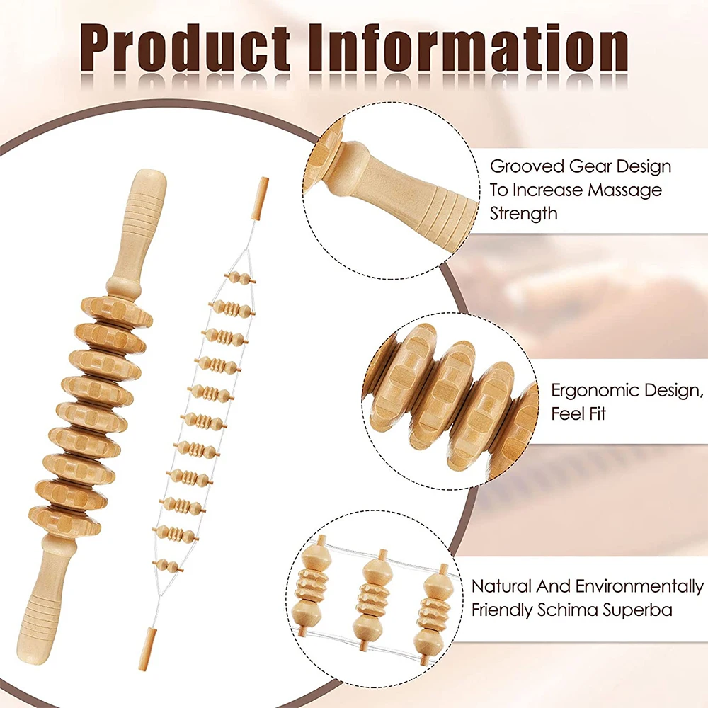L’utilisation de ces outils en bois peut améliorer la circulation sanguine et lymphatique, soulager les tensions musculaires et la fatigue.