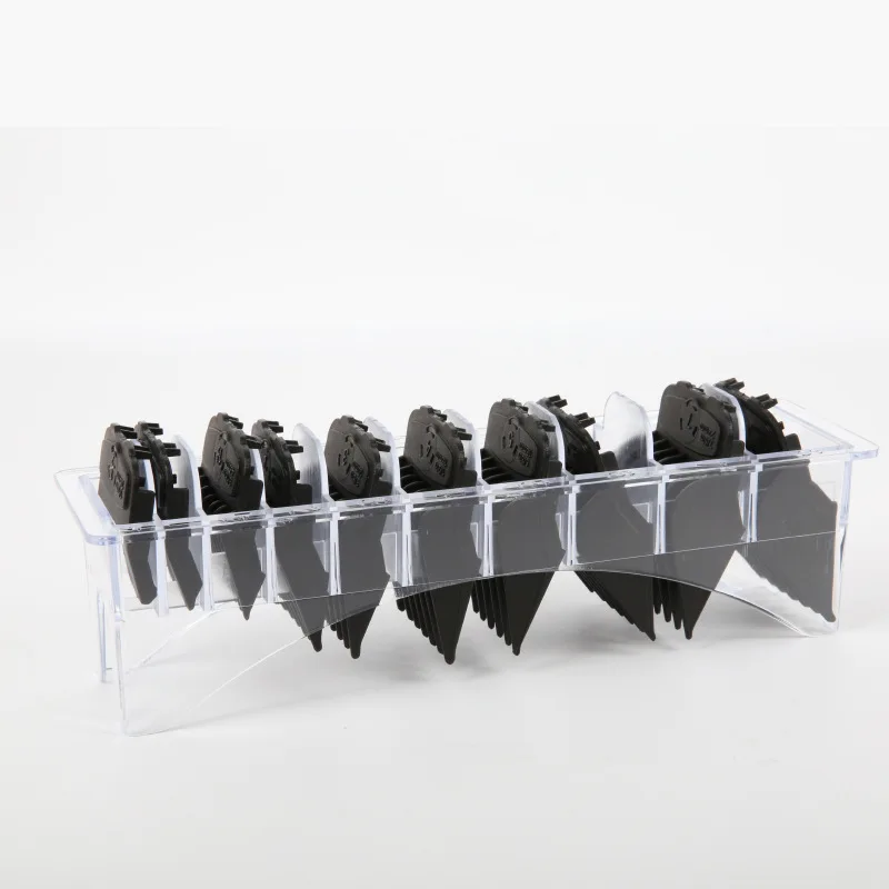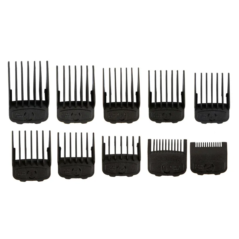 Ce produit est un ensemble de peignes à aimant pour salon de coiffure, conçu pour être utilisé avec des tondeuses à cheveux électriques professionnelles. Les peignes sont dotés d’une tête d’huile dégradée, ce qui permet de créer des dégradés et des coupes de cheveux précises.