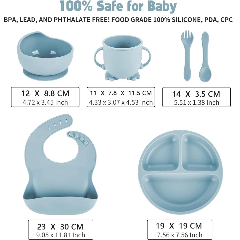 Cet ensemble de vaisselle en silicone pour enfants est idéal pour les parents qui souhaitent faciliter l’alimentation de leur bébé. Les différents éléments de l’ensemble permettent de s’adapter à toutes les étapes de l’alimentation, des purées aux aliments solides. Le matériau en silicone de qualité alimentaire assure la sécurité de bébé, sans BPA, phtalates ou PVC.