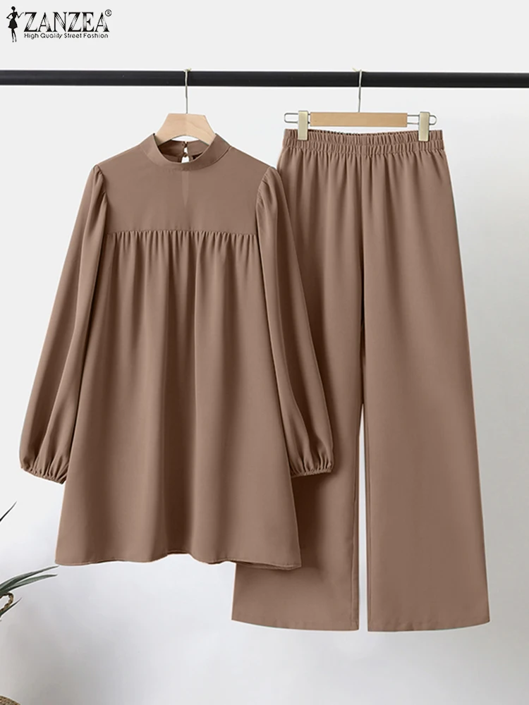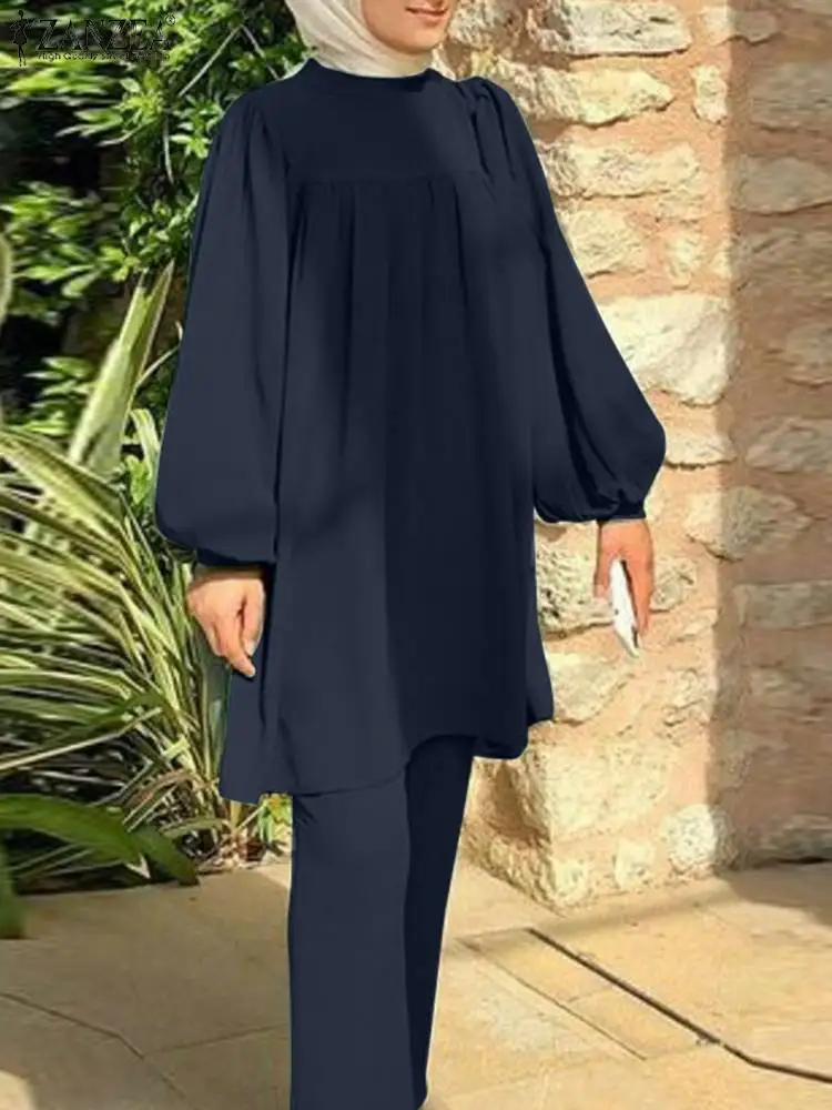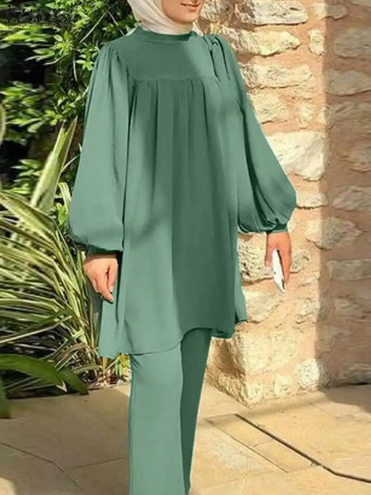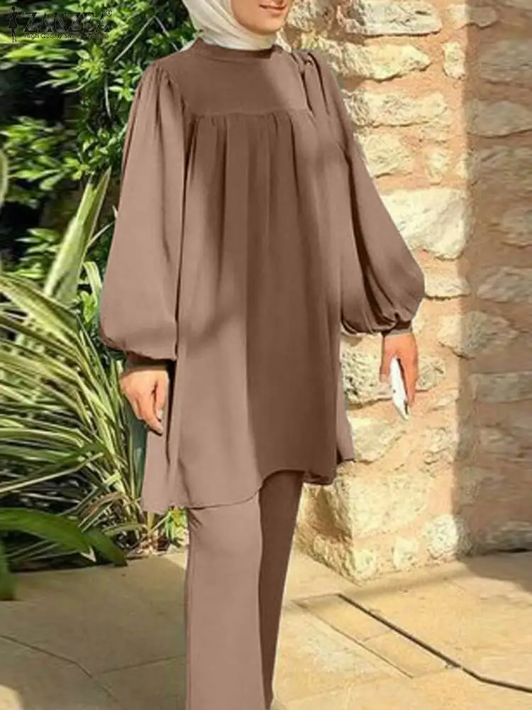 Le ZANZEA-Chemisier et pantalon à manches longues pour femmes musulmanes est un ensemble de vêtements élégant et adapté aux occasions spéciales. Sa coupe ample et ses manches bouffantes lui confèrent un style bohème et rétro très tendance.