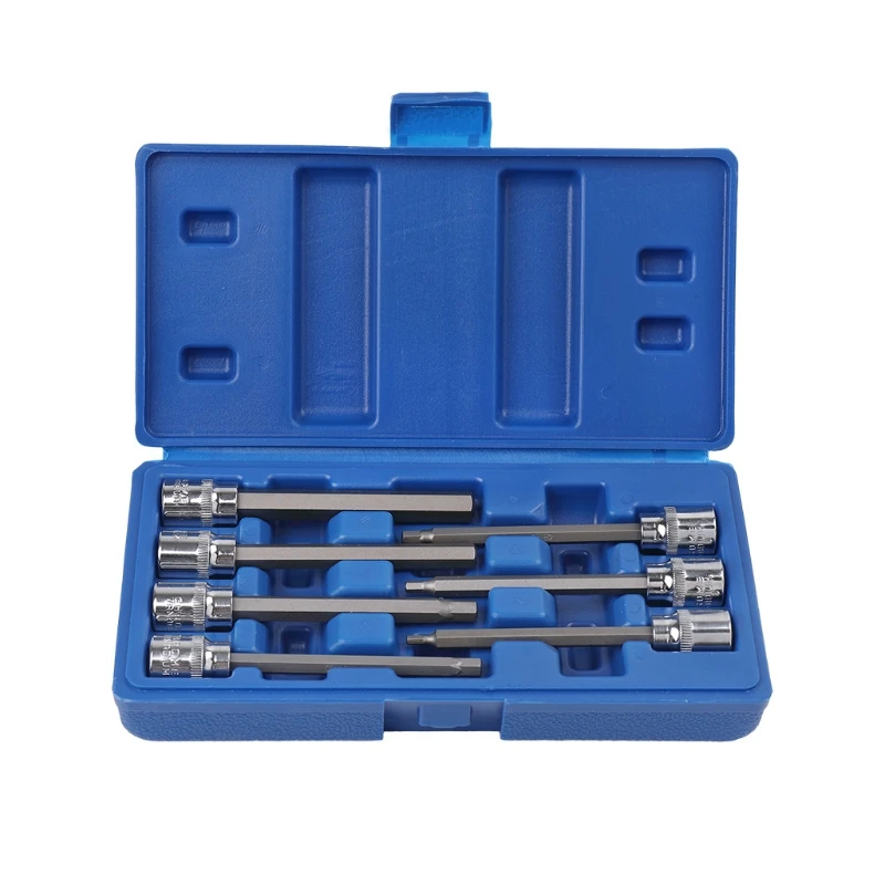 • Jeu extra-long de douilles hexagonales/torx pour accéder aux espaces restreints